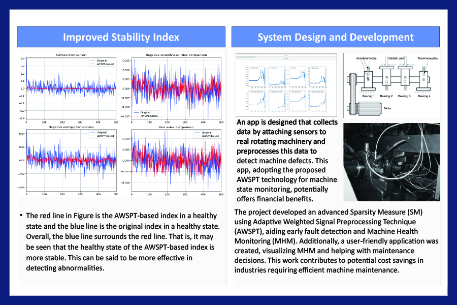 The project culminated in a successful development of the AWSPT-based SMs, showcasing impressive resistance to impulse noise and capacity for early fault detection. The user-friendly application was also created for practical data visualization and automatic realization of MHM, which significantly aids in maintenance decision-making. This breakthrough not only advances the field of MHM but also sets the stage for potential financial benefits across industries heavily reliant on machine maintenance efficiency.