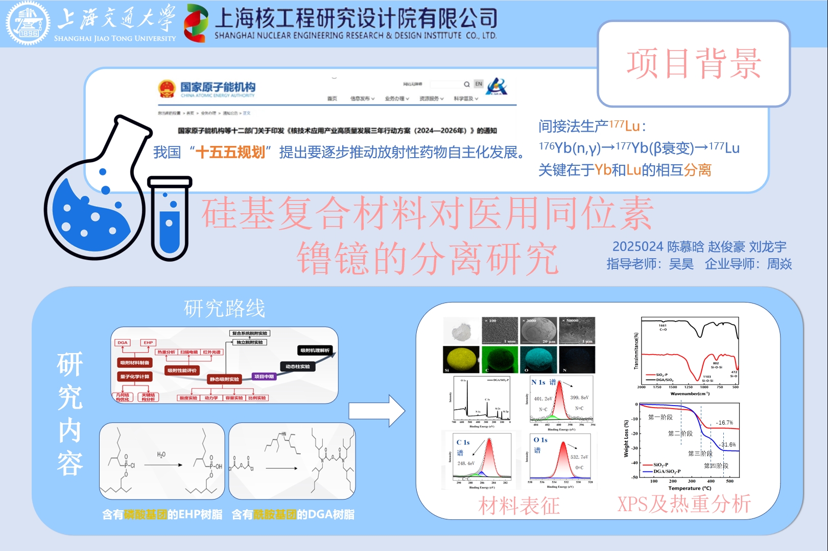 镥-177(177Lu)作为一种新型放射性同位素药物,因为其多项优良性能在医学中的应用具有重要意义。本项目设计了一种基于“间接法”生产177Lu的Lu、Yb分离工艺。选用两种萃取剂,即含酰胺类基团萃取剂DGA与含磷酸类基团萃取剂EHP,并选用新型多孔二氧化硅-聚合物(SiO2-P)作为载体材料。利用旋转蒸发仪将二种萃取剂担载到SiO2-P载体材料上,制成两种新型吸附材料,即DGA/SiO2-P与EHP/SiO2-P。通过静态试验与量子化学计算方式,探究二者与Lu、Yb之间的吸附行为,通过实验与计算相结合的方式开发分离工艺。