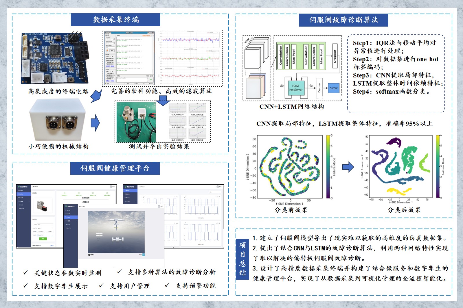 4,完成了一套集成实时监测、故障诊断及数字孪生等功能的偏转板伺服阀健康管理平台,实现了伺服阀运行状态的全方位智能化管理。