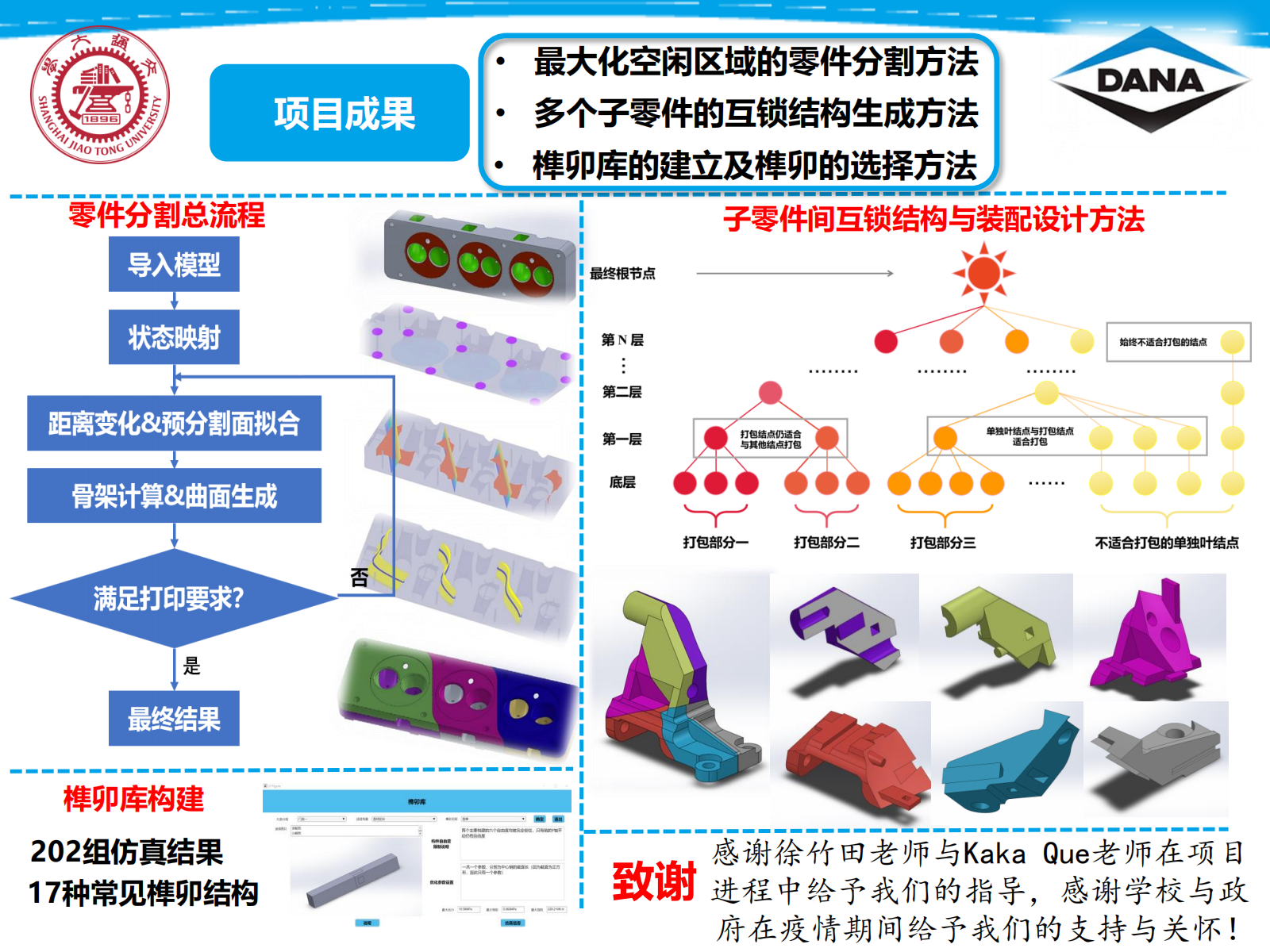 本项目旨在提出一种适用于大型零件的增材制造方案,包括零件分割与榫卯互锁连接的设计方法,使零件满足工况下的力学性能要求。