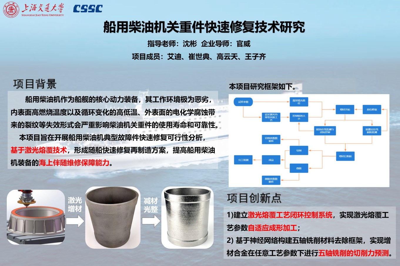 船用柴油机作为船舰的核心动力装备,其工作环境极为恶劣,内表面高燃烧温度以及循环变化的高低温、外表面的电化学腐蚀带来的腐蚀、裂纹等失效形式会严重影响柴油机关重件的使用寿命和可靠性。本项目将基于激光熔覆技术,实现增材过程熔池监控的闭环控制,并以增材试样为研究对象,开展原位减材加工工艺试验,阐述增材高温合金的材料去除和加工表面创成机理,以探究增材后样件的最优减材工艺参数,最终实现船用柴油机关重件的复用,提高船用柴油机使用效率。