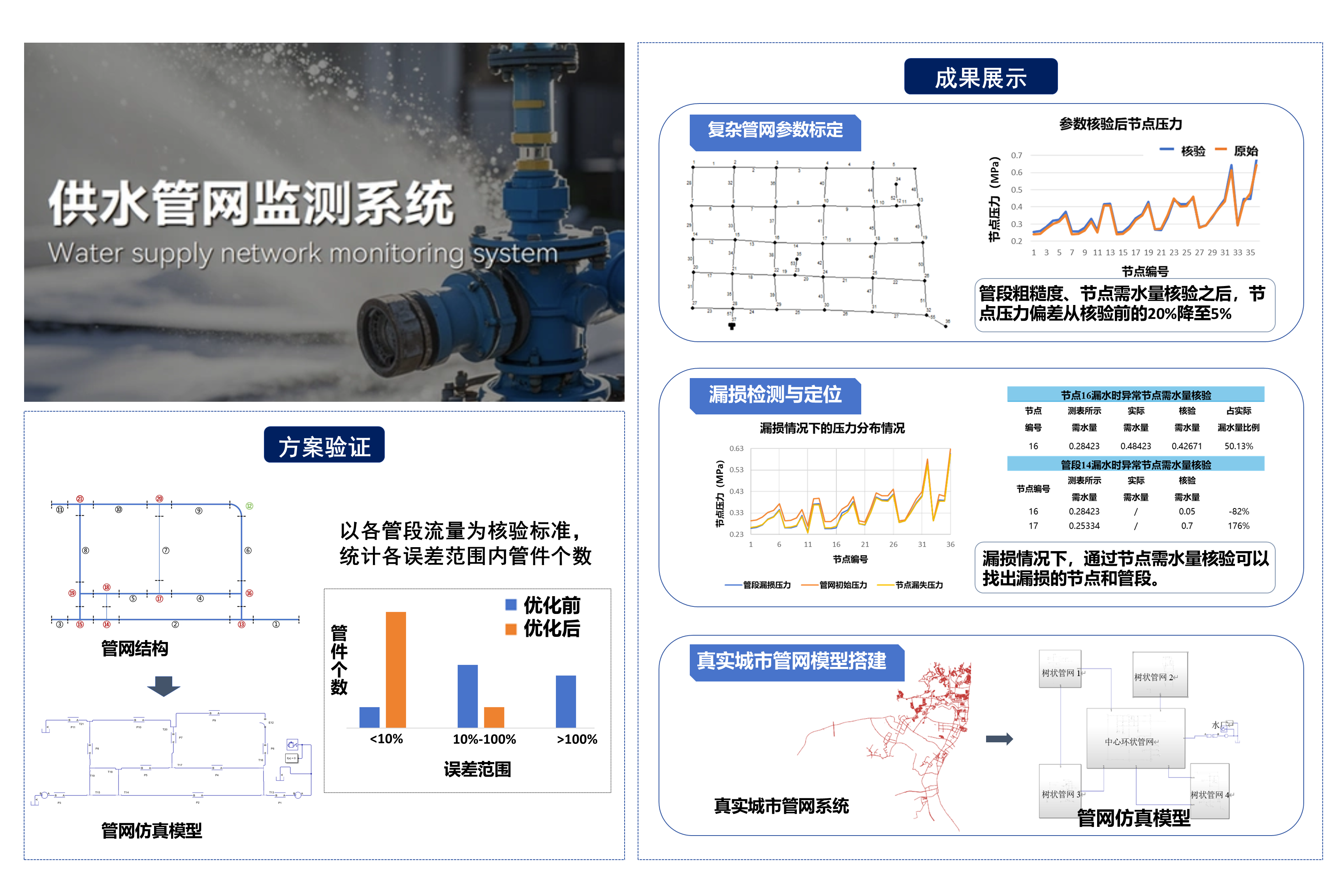 (4)搭建了城市管网面向真实运行环境的仿真系统,通过核验管网节点需水量,找出节点或管段的漏损位置;