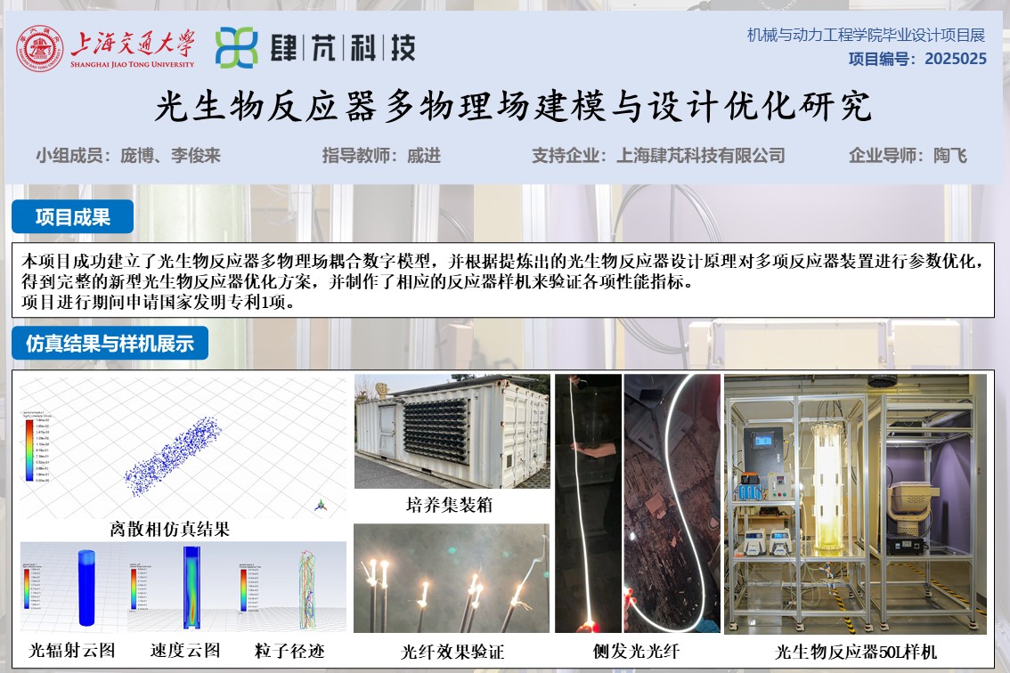 本项目成功建立了光生物反应器多物理场耦合数字模型,并根据提炼出的光生物反应器设计原理对多项反应器装置进行参数优化,得到完整的新型光生物反应器优化方案,预计可节省约20%光能消耗,并制作了相应的反应器样机以验证各项性能指标。