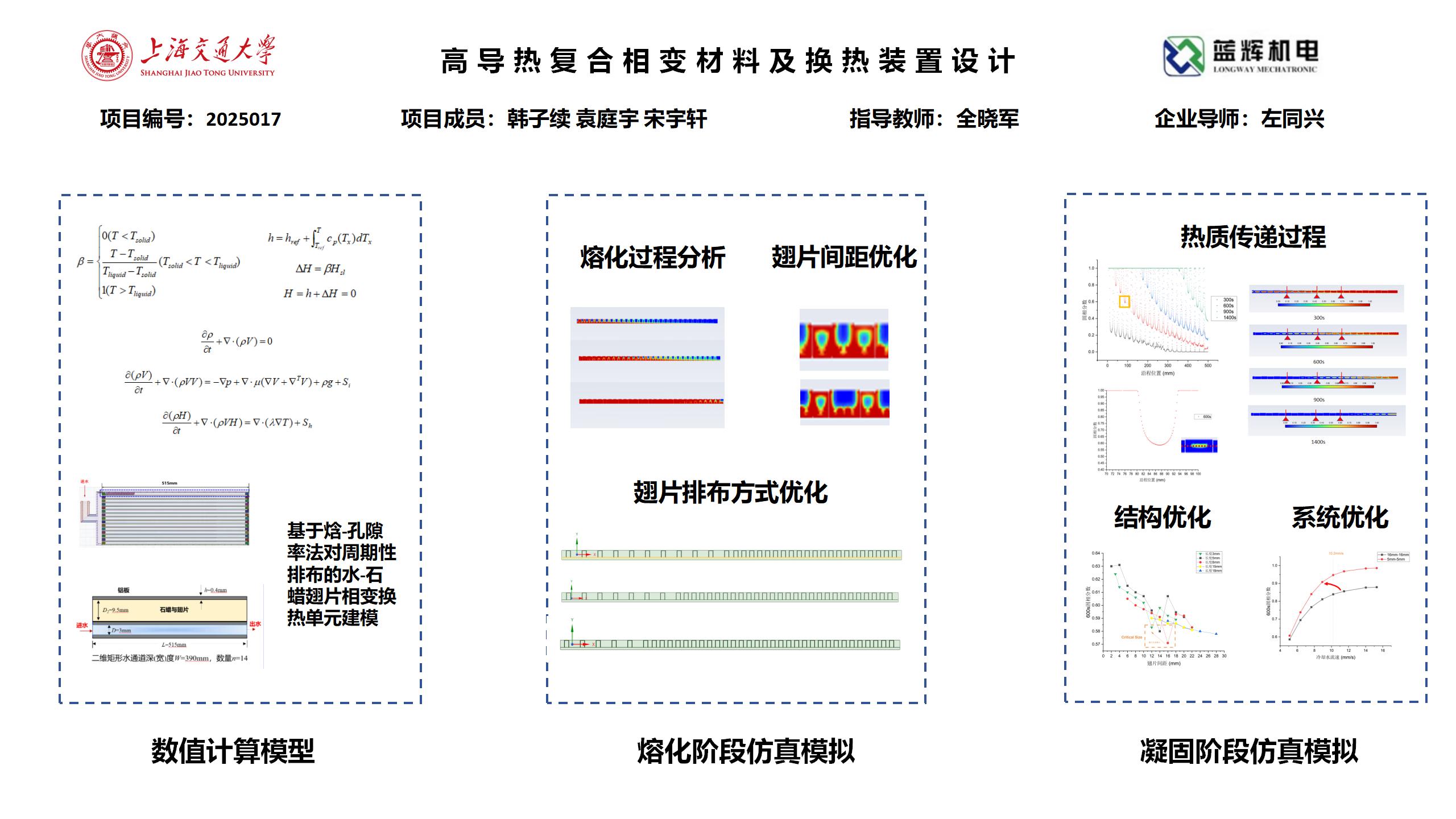全球能源转型的背景下,“碳达峰,碳中和”的大目标下,可再生能源开发利用成为u必然趋势。面向可再生能源供给侧与需求侧时间尺度不匹配的问题,设计并优化了一款基于高导热复合材料的相变换热装置。装置由水、石蜡、铝翅片三部分组成,项目主要针对翅片的尺寸、间距、拓扑分布等要素进行优化,最终设计一款储能密度大、换热速度快,出口水温稳定的高性能相变换热装置。