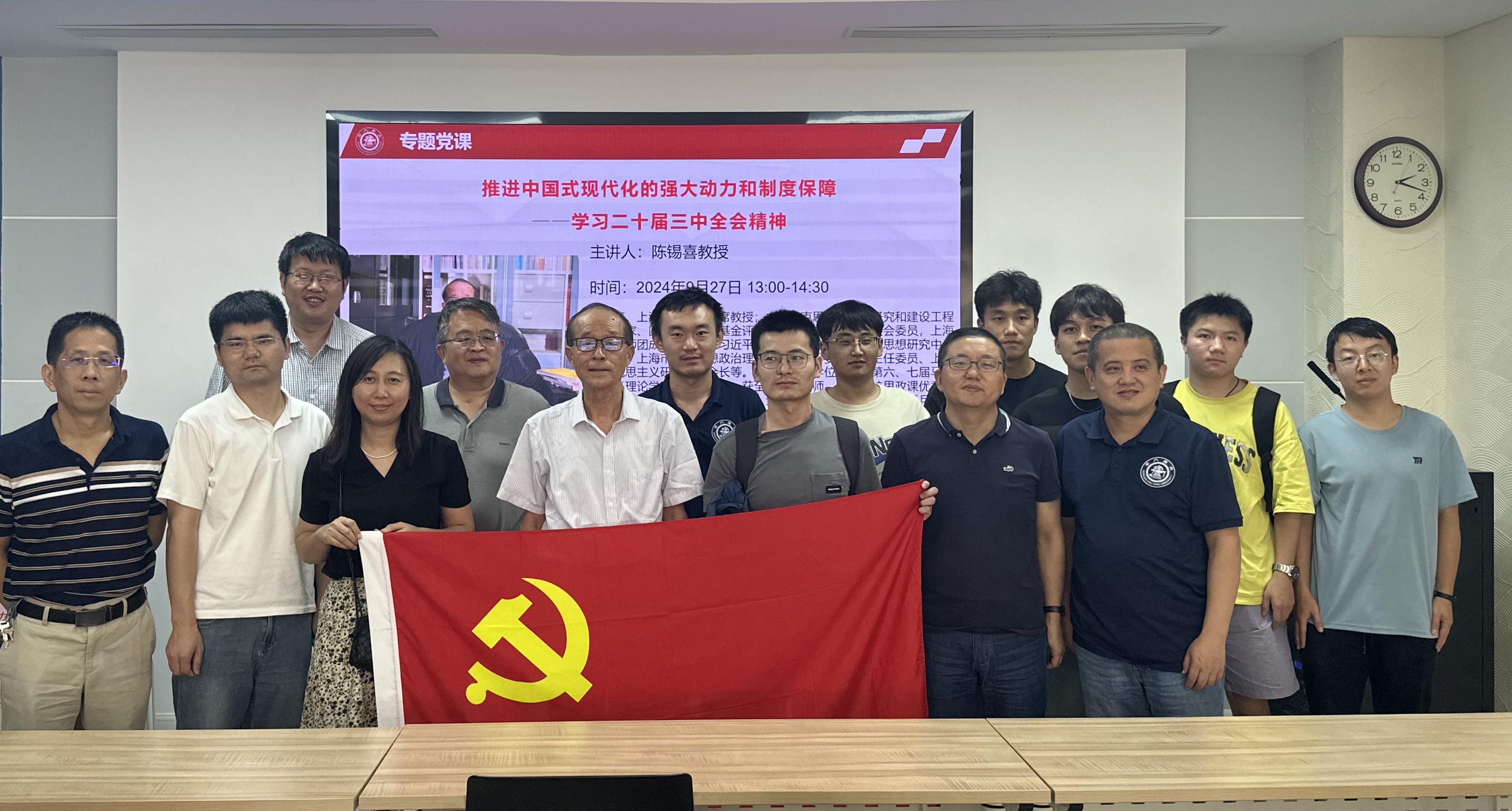 9月27日,工程热物理研究所教工党支部联合航空动力研究所教工党支部、工程热物理研究所研究生第一党支部和第二党支部开展主题党日活动。本次活动邀请beat365中文官方网站讲席教授、中央马克思主义理论研究和建设工程首席专家陈锡喜做了题为“推进中国式现代化的强大动力和制度保障——学习党的二十届三中全会精神”报告。50余名师生党员参加了活动。