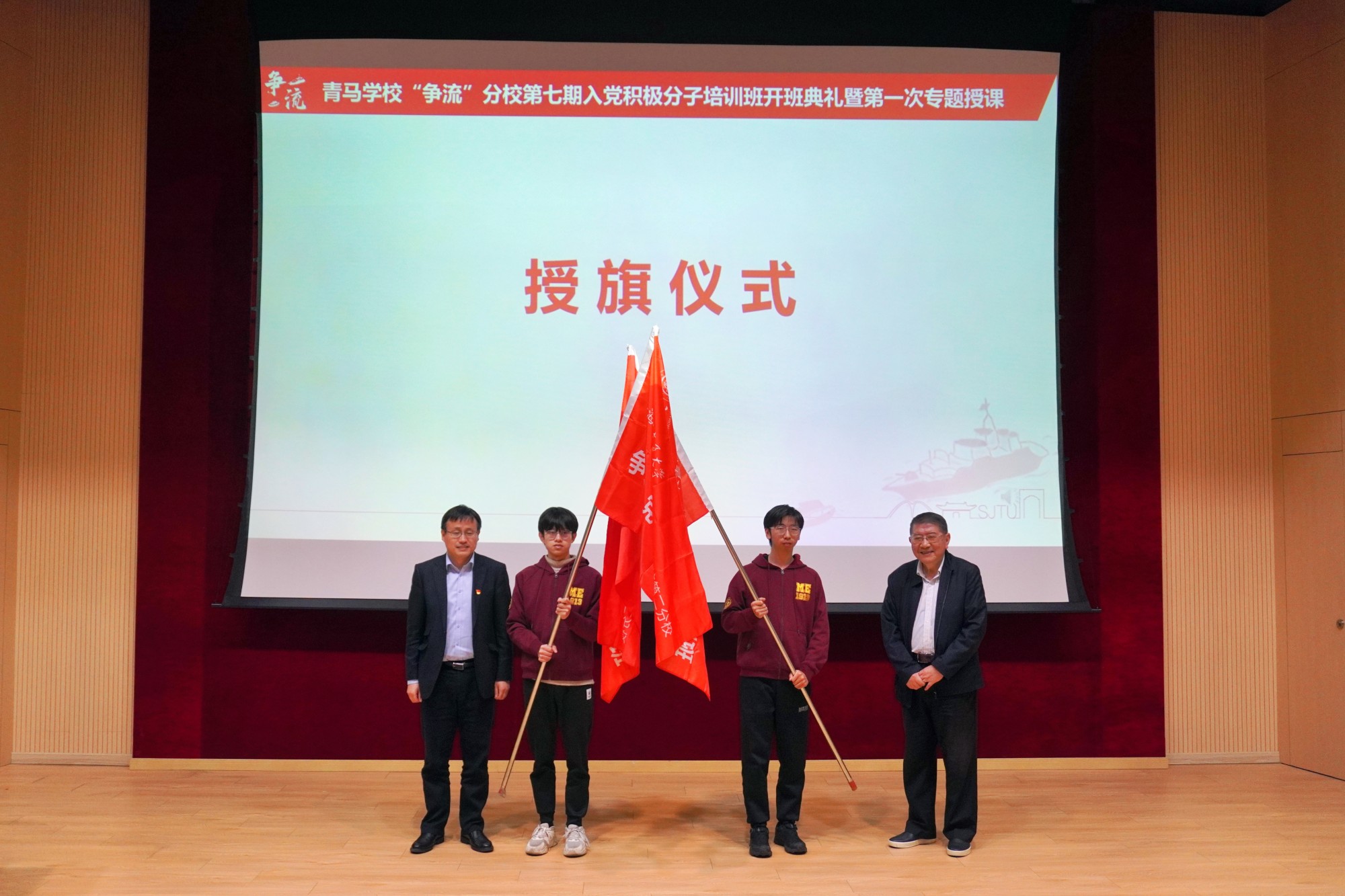 会上举行了授旗和赠书仪式。培训班副班主任李哲介绍了本期培训班总体安排,期望培训班学员抓住学习机会,通过专题授课、网络党校、实践教学、志愿服务等形式,提升政治理论素养,坚持学思用贯通、知信行统一。