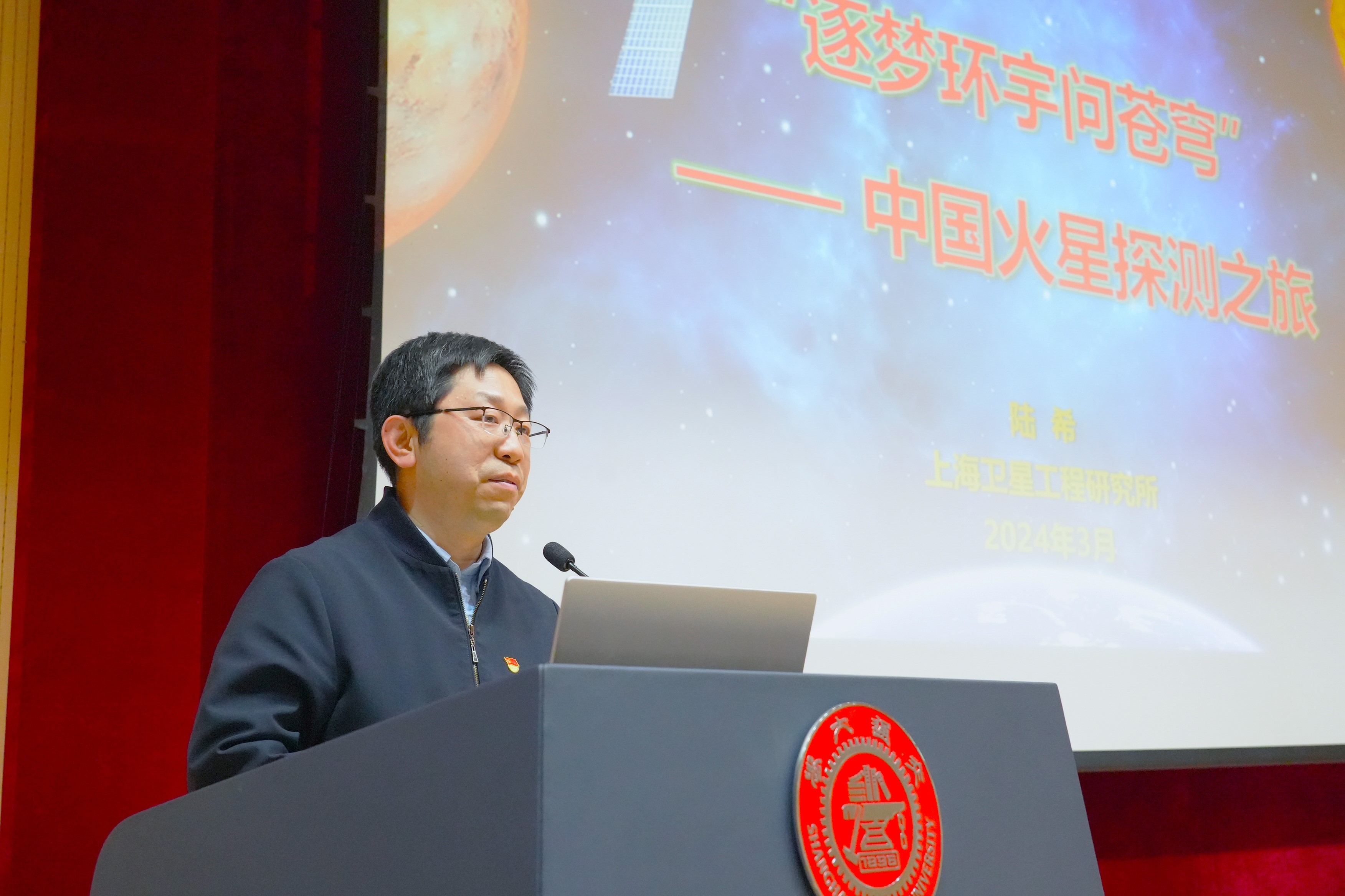陆希以“‘逐梦环宇问苍穹’——中国火星探测之旅”为主题,分享自身深耕航天事业的成长感悟。他介绍了深空探测的意义、发展历程与关键技术,讲述了目前深空探测工程中行星探测、巨行星探测、小天体探测的重大成就,分享了“天问一号”的火星探测征程,希望毕业生党员传承航天精神,不忘初心、脚踏实地,在干事创业中勇于担当、不懈奋斗,为航天梦、中国梦注入拼搏实干的新鲜血液。