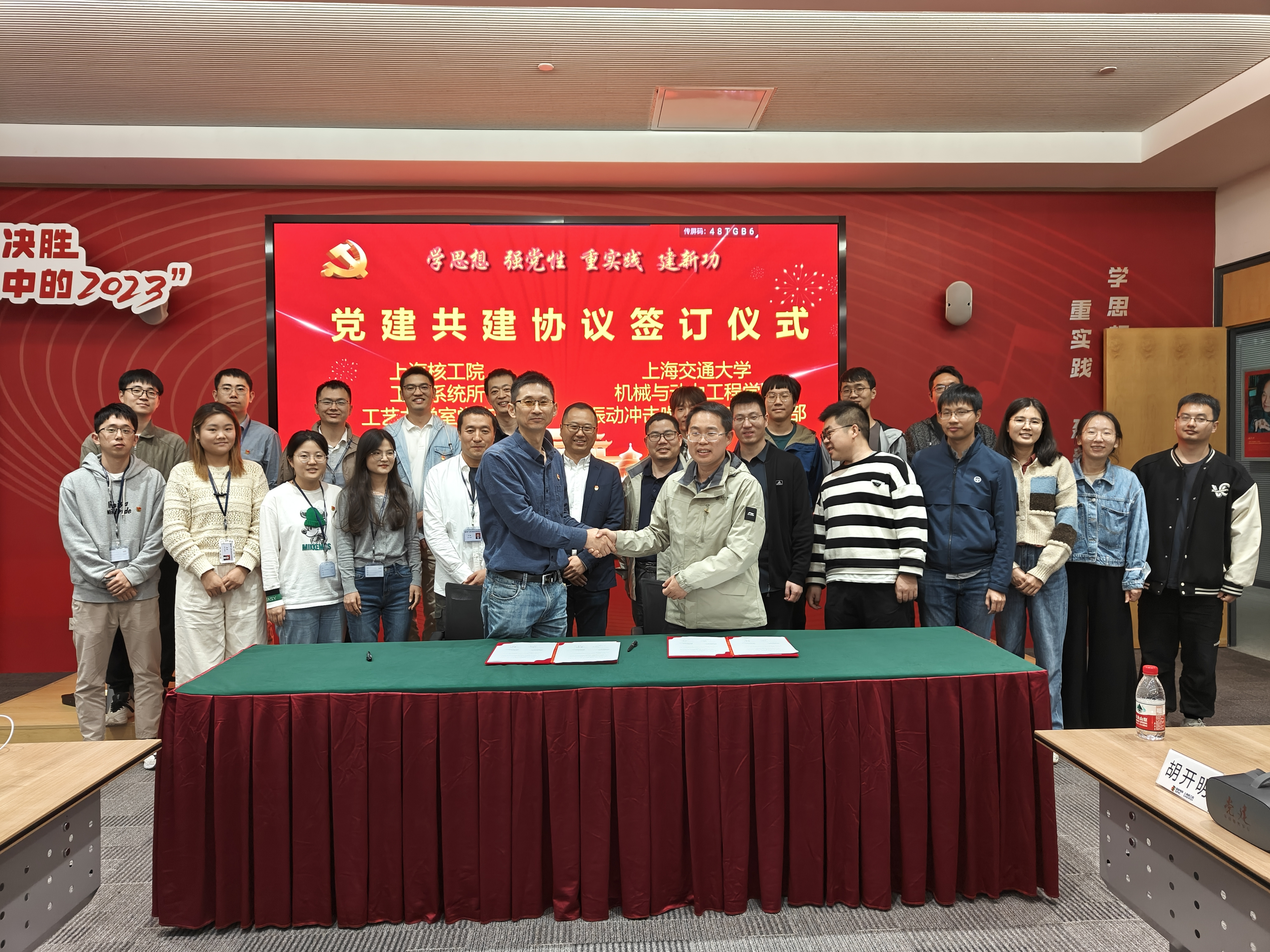 为深入贯彻落实习近平新时代中国特色社会主义思想和党的二十大精神,充分发挥校企技术联合优势,推进核电领域振动、冲击、噪声等方向的项目研究合作,11月8日,振动、冲击、噪声研究所党支部与上海核工程研究设计院(简称“上海核工院”)股份有限公司工艺力学室党支部联合开展共建活动。上海核工院工艺系统所党总支副书记王鑫,副所长、纪检委员宋春景,工艺力学室党支部书记王高阳,振动、冲击、噪声研究所党支部书记黄修长以及双方支部党员参加了本次活动。