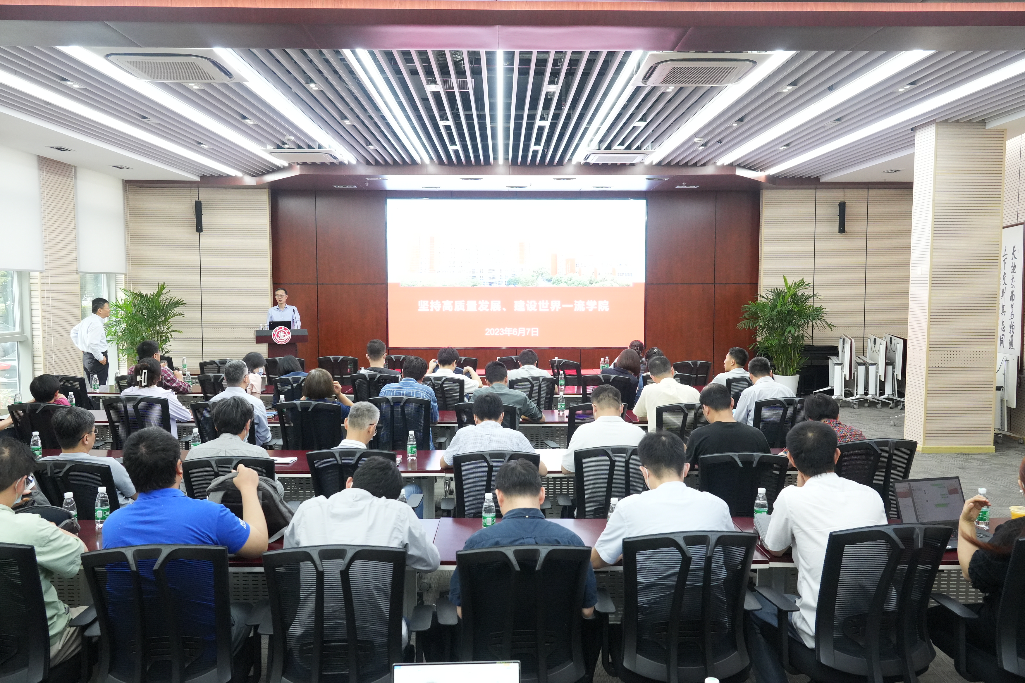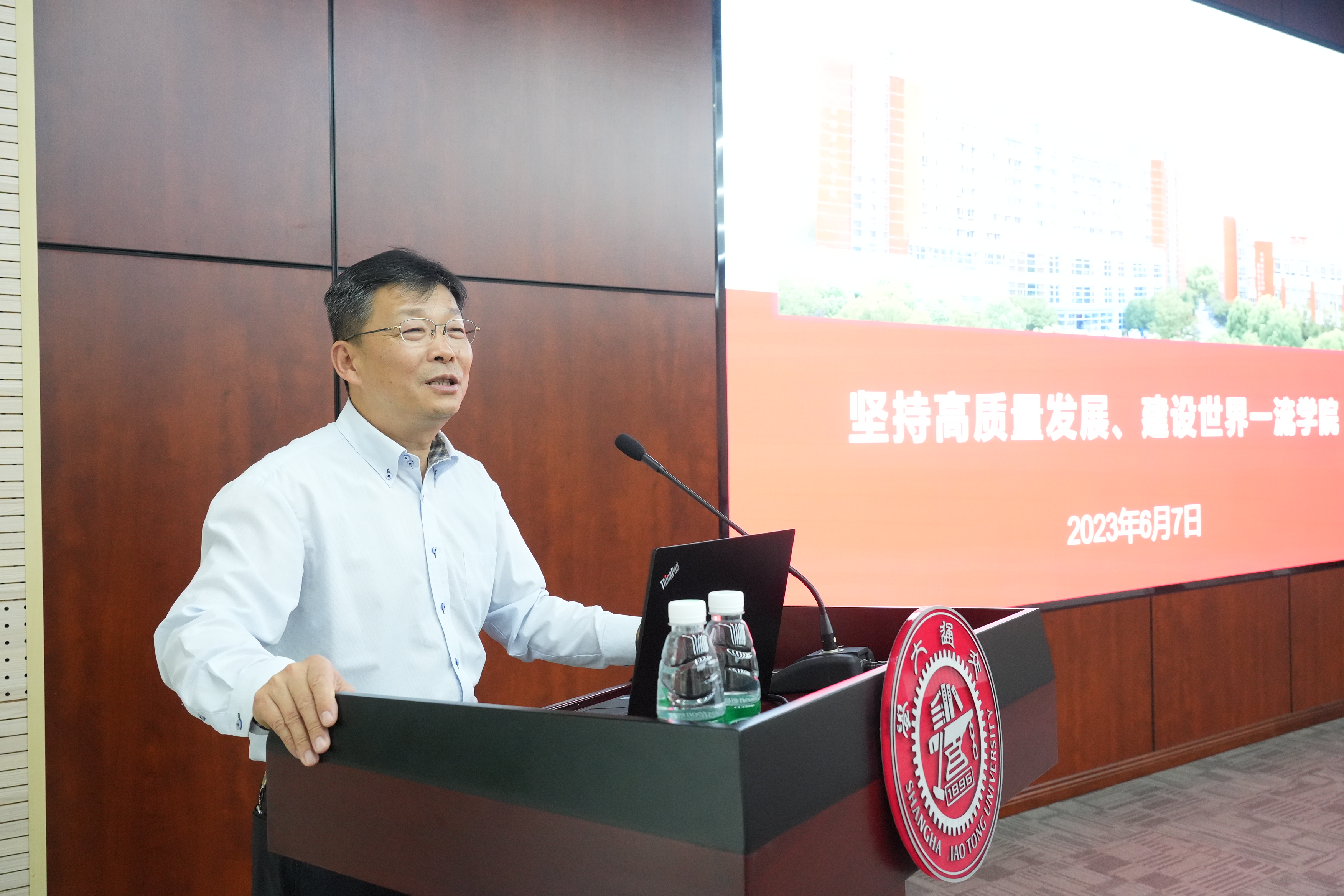 为深入学习贯彻习近平新时代中国特色社会主义思想主题教育,6月7日,beat365中文官方网站院长、党委副书记杜朝辉以“坚持高质量发展,建设世界一流学院”为题开展专题党课,学院教工党支部书记、支委等50余人参加学习。党课由学院党委书记林立涛主持。