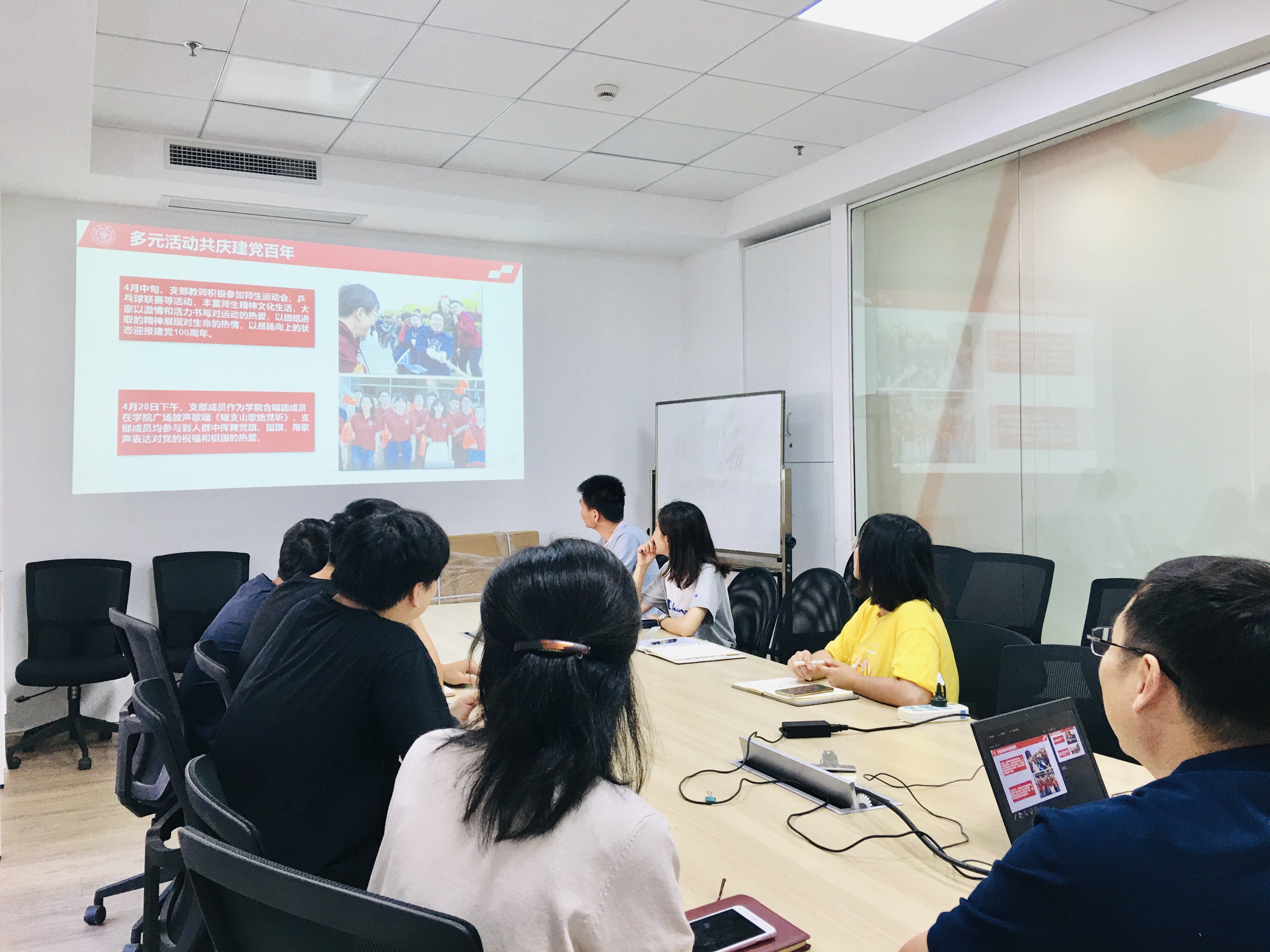 会上,戴雨吟从支部概况、支部2021年上半年党史学习教育情况、多元活动共庆建党百年三部分详细汇报了支部的工作情况,表示将继续保持支部建设的良好势头,深入开展支部理论学习和实践活动。