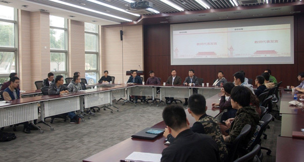 在座谈交流环节,师生就前期调研汇总的研究生同学关心的学业科研、职业发展、课余生活三方面问题进行了互动。针对如何适应科研生活的问题,殷承良教授认为,新生要做好人生规划,不要好高骛远,要脚踏实地,应该在认真上课、修满学分的同时,开始学习做力所能及的科研工作,并多与老师沟通。他还与同学们分享了最近观看《将改革进行到底》、《不忘初心 继续前进》等政论专题片的感受心得,告诉同学们一定要对党和国家的未来充满信心。