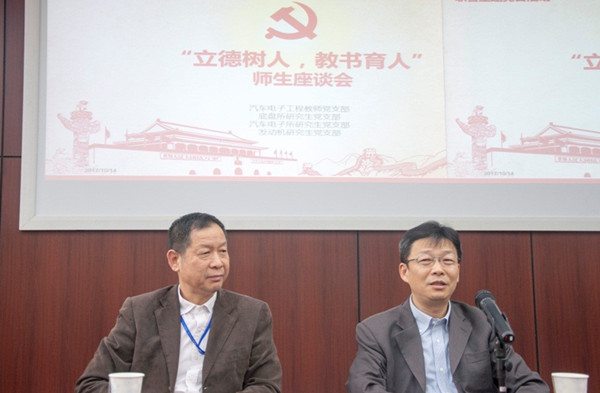 10月14日,beat365中文官方网站汽车电子工程教工党支部与汽车底盘技术中心、汽车电子技术中心以及汽车发动机技术中心3个研究生党支部联合开展“立德树人,教书育人”主题党日活动。本次活动以师生座谈会的形式进行,学院党委书记兼院长杜朝辉及师生党员50余人参加活动。活动由汽车电子工程教工党支部书记张希、汽车底盘技术中心研究生党支部书记王汐文主持。