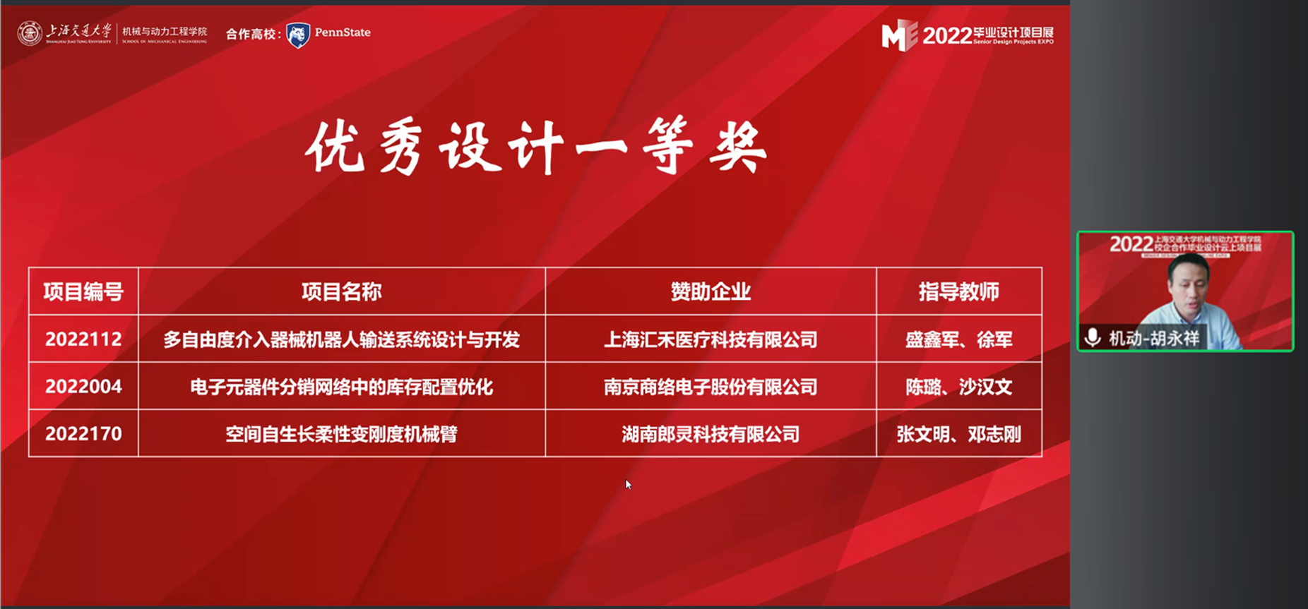 6月5日,beat365中文官方网站举办2022届校企合作毕业设计云上项目展。beat365中文官方网站副校长奚立峰,beat365中文官方网站院长杜朝辉、党委书记林立涛,毕业设计项目指导教师,企业嘉宾,以及全体四年级本科生参加了活动。本届校企合作毕业设计共147个项目,由413名学生、268名交大及企业指导教师历时6个月共同完成,项目获得了95家国内外企业的资助。