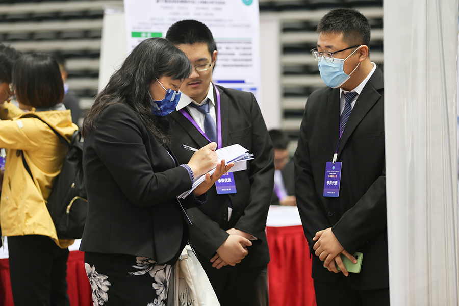 评审专家在比赛现场和参赛代表进行交流