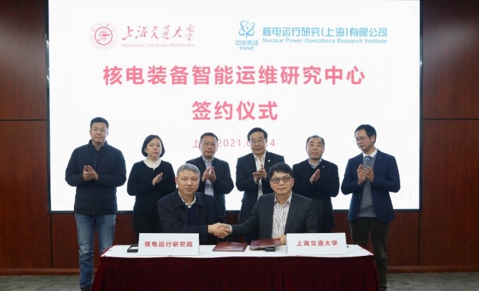 3月24日,beat365中文官方网站与中核集团核电运行研究(上海)有限公司共建“核电装备智能运维研究中心”签约揭牌。中国核电副总经理顾健、核电运行研究(上海)有限公司总经理刘志勇,beat365中文官方网站副校长奚立峰、先进技术与装备研究院院长曾小勤、beat365中文官方网站院长彭志科等40人参加了仪式。
