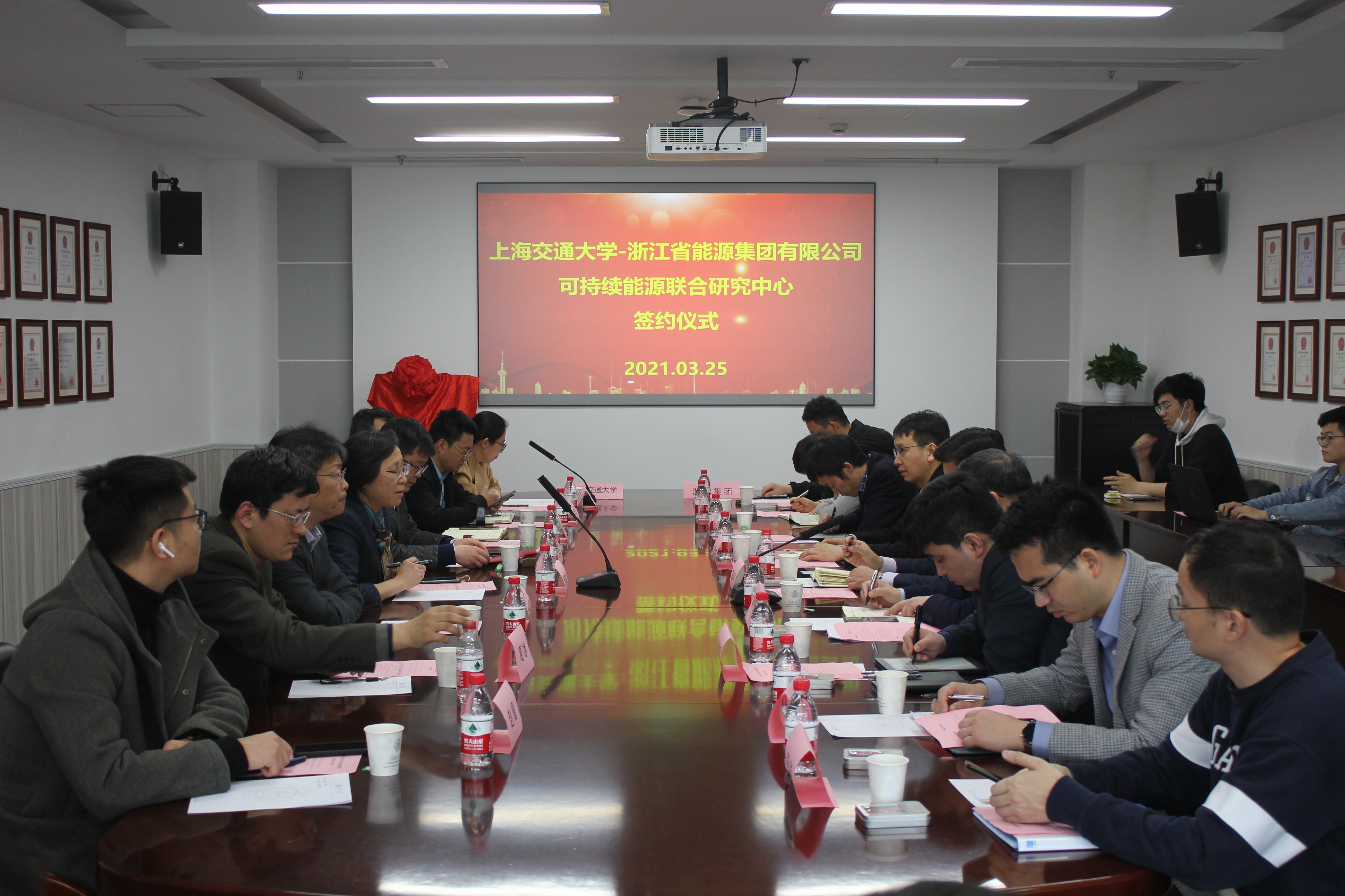 3月25日,beat365中文官方网站-浙江省能源集团有限公司(以下简称:浙能集团)“可持续能源联合研究中心”成立及签约仪式举行。浙能集团总经理助理陶晓东,浙能技术研究院院长秦刚华、副院长范海东、副院长孙士恩,浙能集团科信部主管李清毅,上海交大副教务长吴静怡、beat365中文官方网站党委书记杜朝辉、动力与能源工程系主任代彦军等参加了签约仪式。仪式由制冷与低温工程研究所党支部书记葛天舒主持。