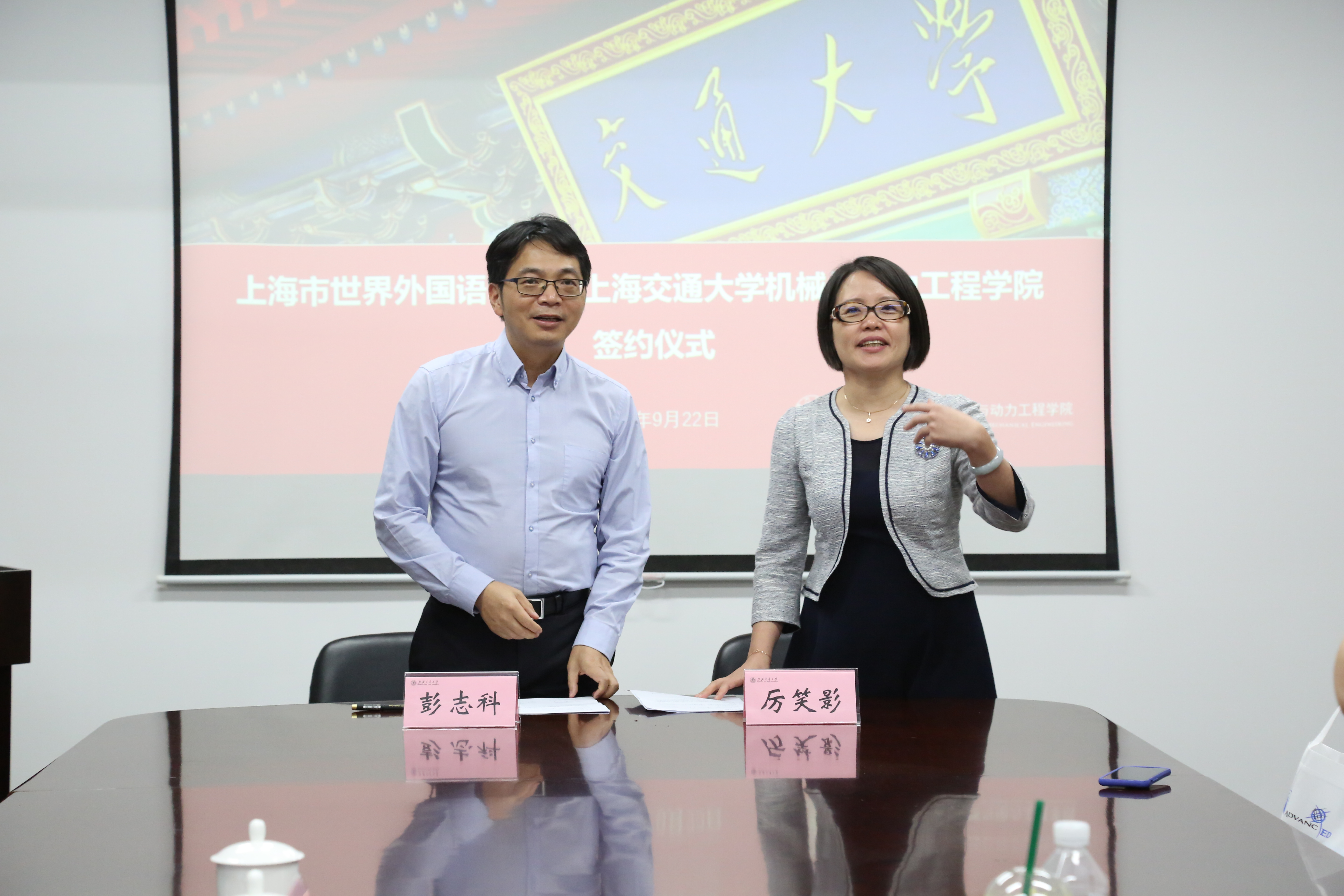 与会双方的参会人员积极探讨了合作模式,纷纷表示愿意分享学院实验室或提供课题,助力中学生的培育。会上上海市世界外国语中学和beat365官网签署了《联合科技培养合作协议书》。