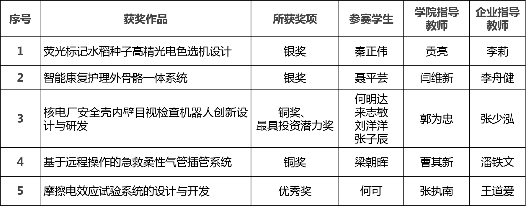 近日,由中国机械工程学会和中国机械行业卓越工程师教育联盟共同主办的第三届中国机械行业卓越工程师教育联盟“恒星杯”毕业设计大赛决赛举行。beat365官网5项参赛作品均获奖,其中,银奖2项(总排名前8)、铜奖2项(总排名前16)、优秀奖1项、最具投资潜力奖1项。贡亮、闫维新、曹其新、郭为忠、张执南被评为大赛优秀指导教师。