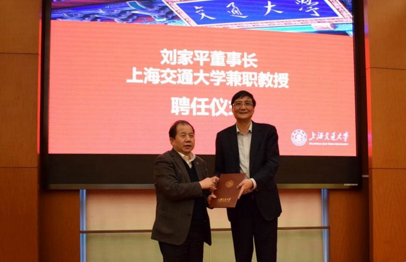 会议期间举行了刘家平董事长beat365中文官方网站兼职教授聘任仪式。奚立峰介绍了刘家平教授的简历。林忠钦向刘家平颁发了beat365中文官方网站兼职教授聘书,并为他佩戴了校徽。