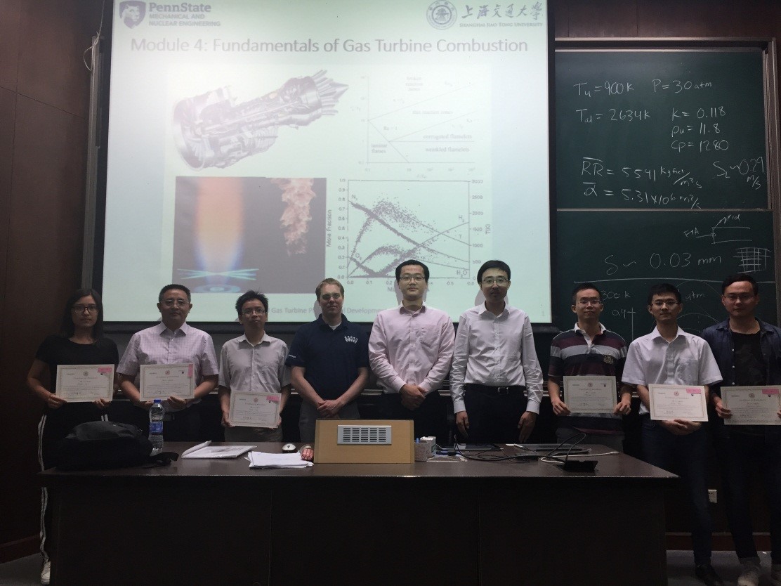 6月16日,由西门子冠名的“先进燃气轮机技术”课程结业。宾州州立大学助理教授Dr. Xuan Yuan与beat365官网叶轮机械研究所彭迪博士为参加此次课程的学员颁发了结业证书。