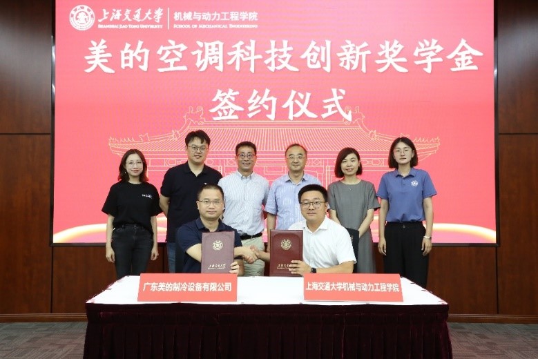 9月20日,“美的空调科技创新奖学金”捐赠签约仪式举行。美的家用空调热技术研究所所长李金波,2005届博士校友、美的家用空调建模与数智化领域专家付德钢,学院副院长朱磊,制冷与低温工程研究所丁国良教授等有关师生参加了活动。