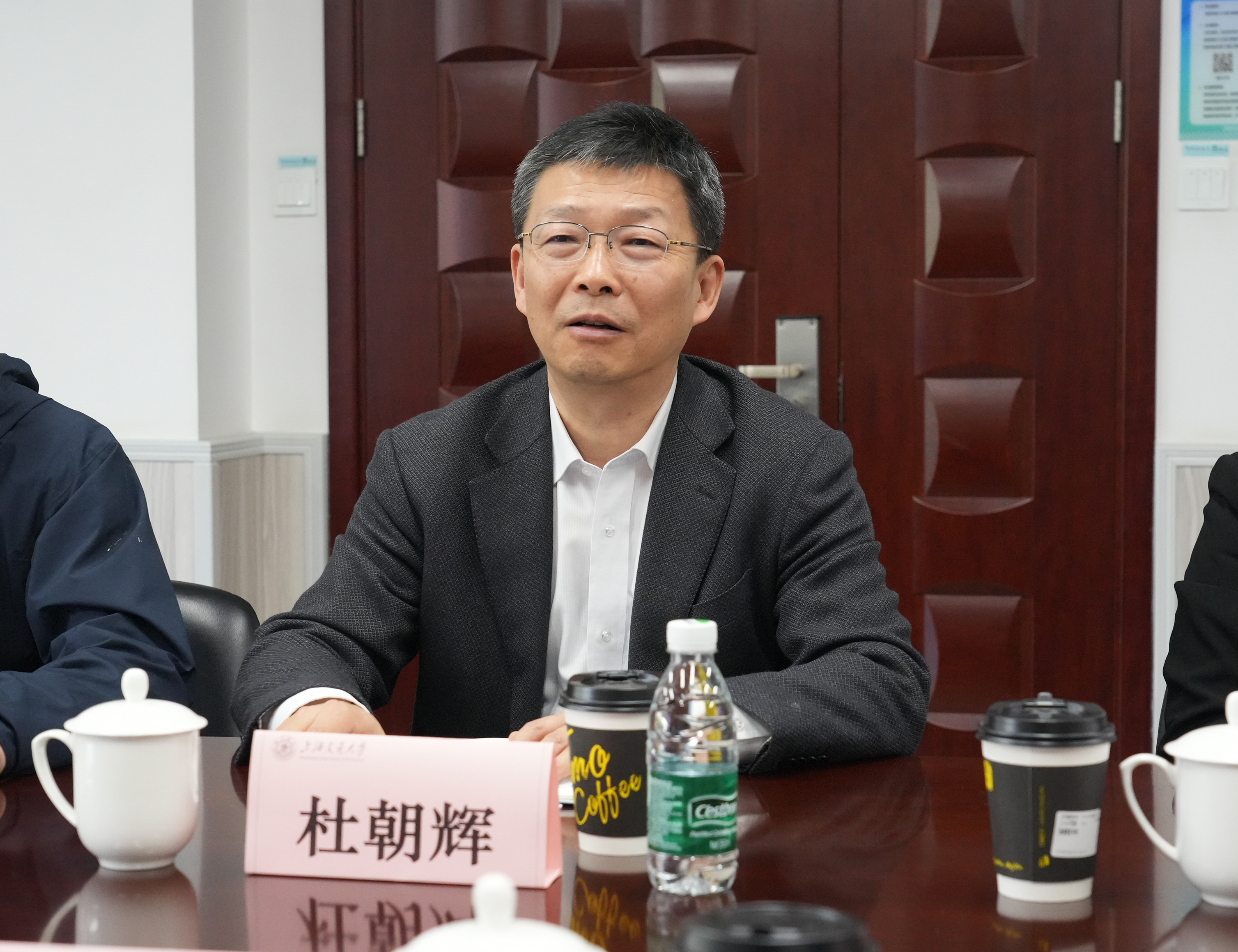 杜朝辉致欢迎辞,希望通过本次交流,促进双方在科研合作、人才培养等方面的发展共赢,在煤炭行业发展新质生产力,共同为推动煤炭领域高质量发展贡献力量。