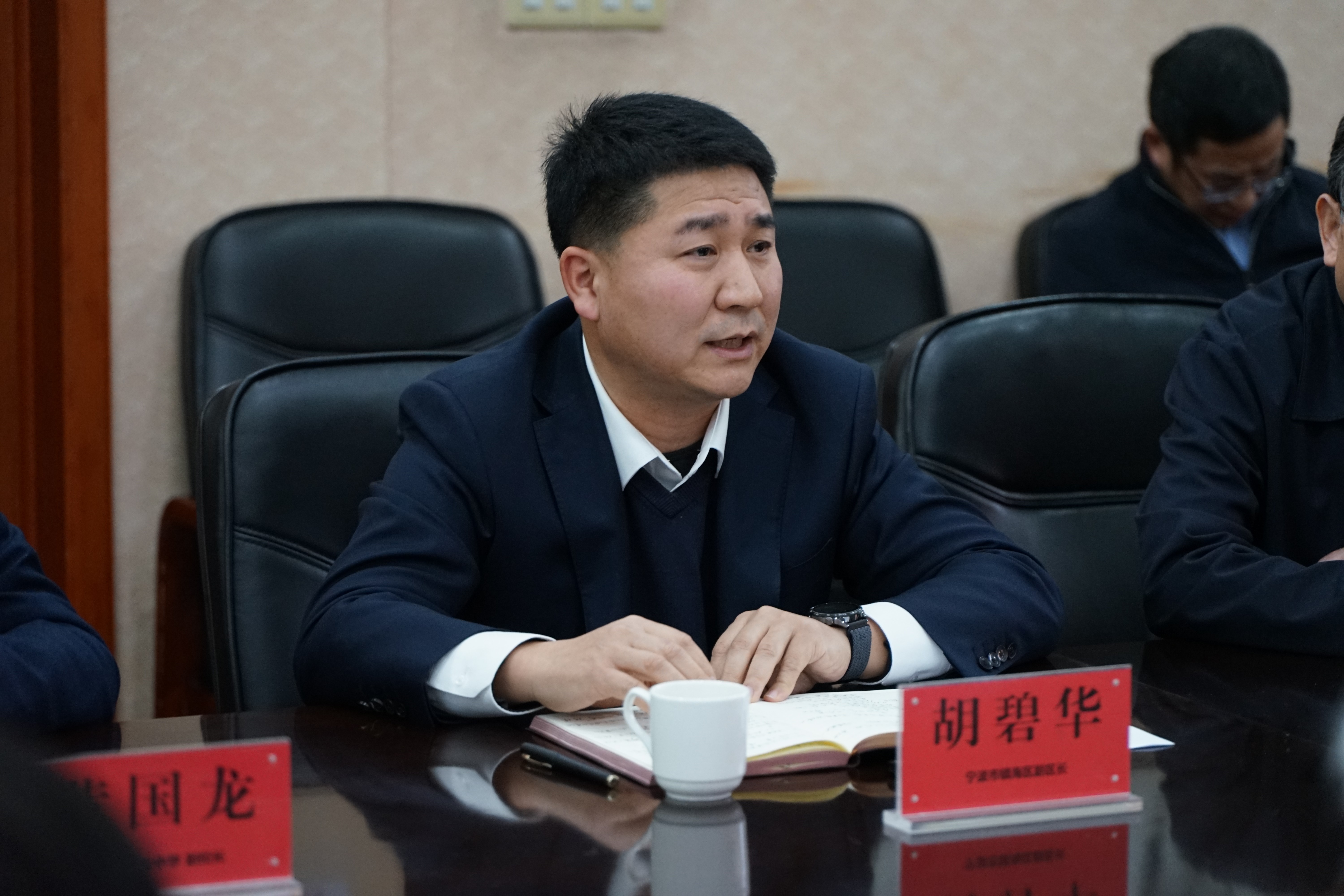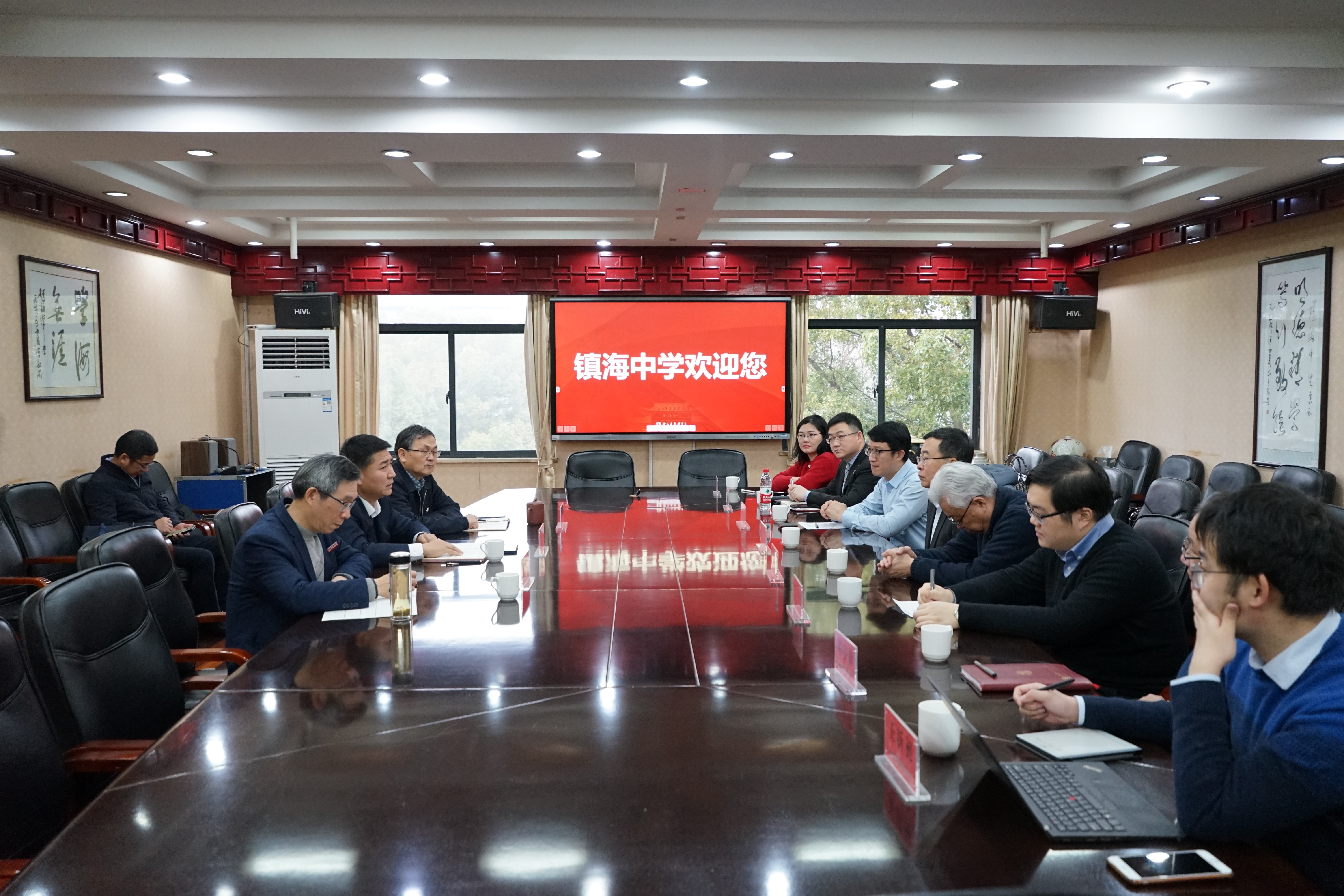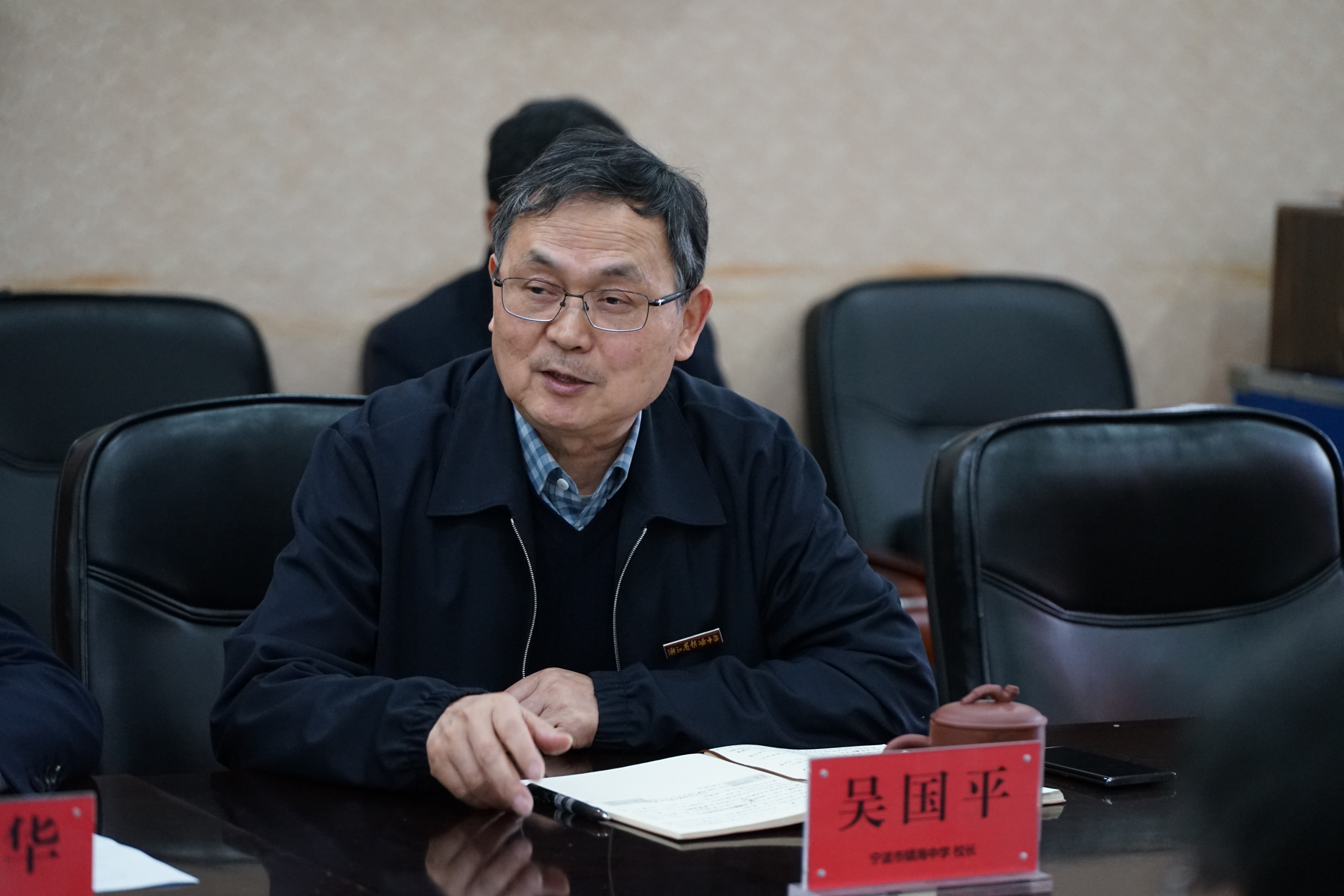 胡碧华和吴国平对上海交大一行的莅临表示了感谢。胡碧华介绍了镇海人民尊师重教的传统及镇海区在基础教育方面开展的特色工作。吴国平对两校的合作进行了回溯,希望通过此次合作进一步共同推进创新人才培养。
