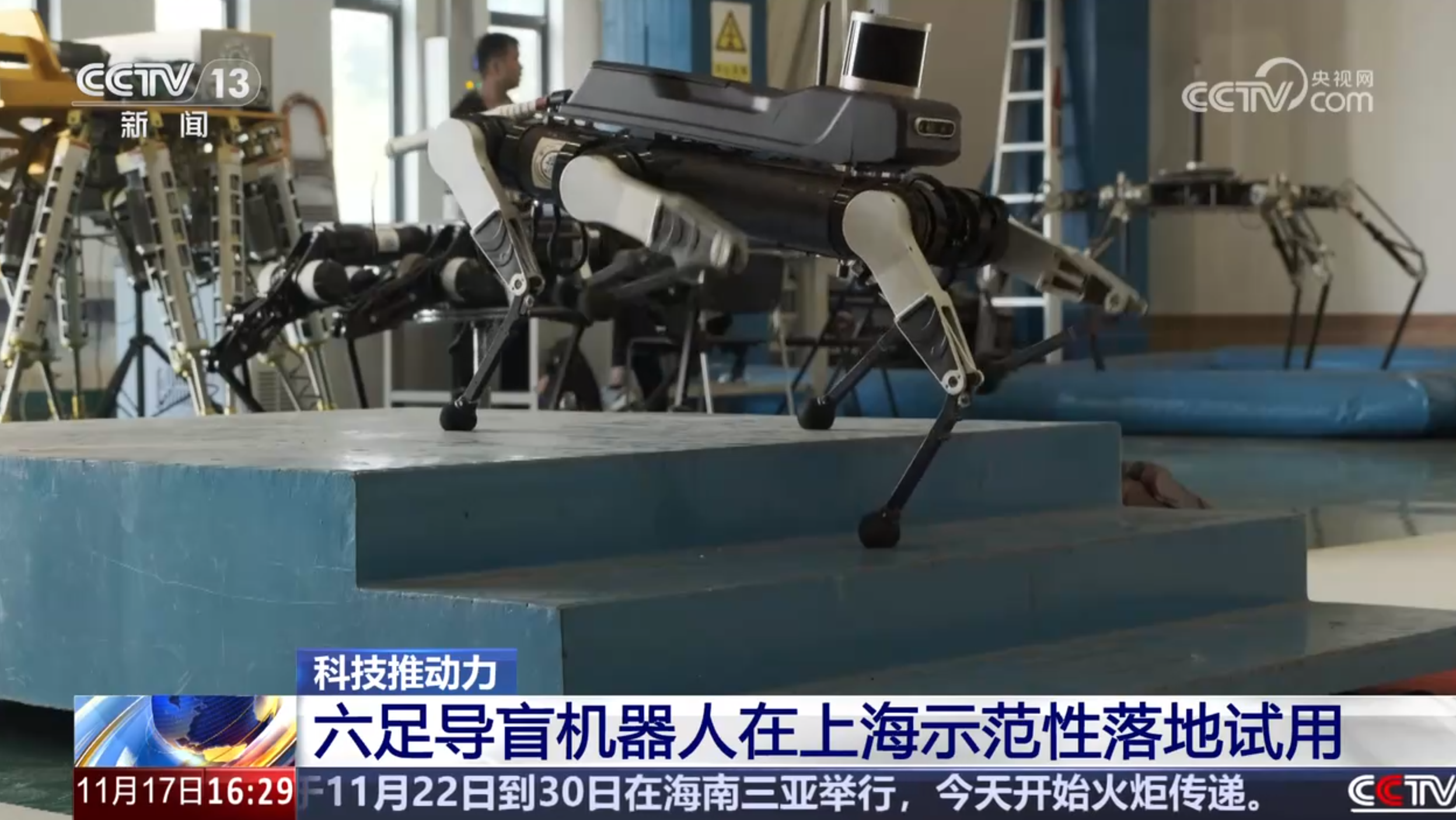 11月17日,央视新闻直播间报道了beat365官网高峰教授团队导盲六足机器人的最新进展,该款导盲机器人能够实现导航、避障、变速,甚至信号灯识别等功能,视障人士通过语音和盲杖,就能与其进行交互,该款机器人目前已在上海进行了示范性落地试用。