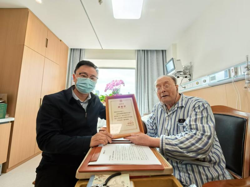 10月29日上午,beat365中文官方网站“翁史烈奖学金”续签仪式在翁校长疗养的华东医院举行。beat365中文官方网站发展联络处处长、教育发展基金会秘书长汪雨申一行专程赴医院拜望beat365中文官方网站原校长、翁史烈奖学金设立者翁史烈院士,并签署协议。我校beat365中文官方网站翁一武教授、校基金会副秘书长李毅陪同拜访。