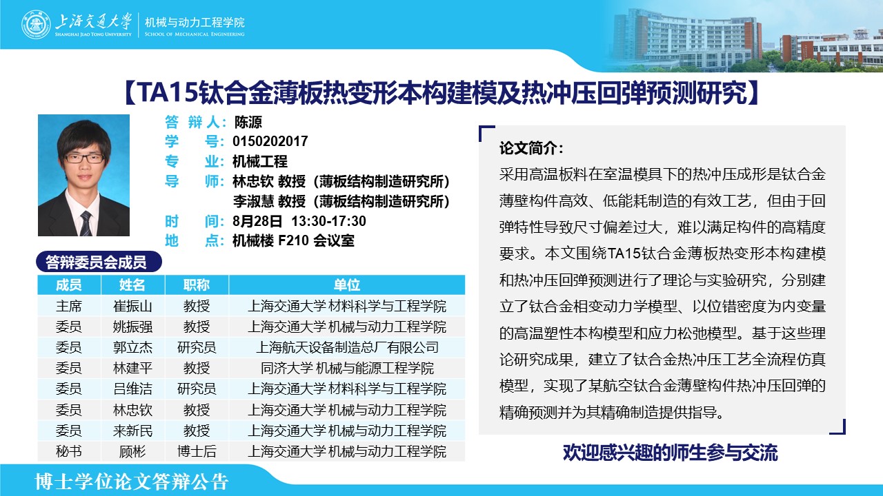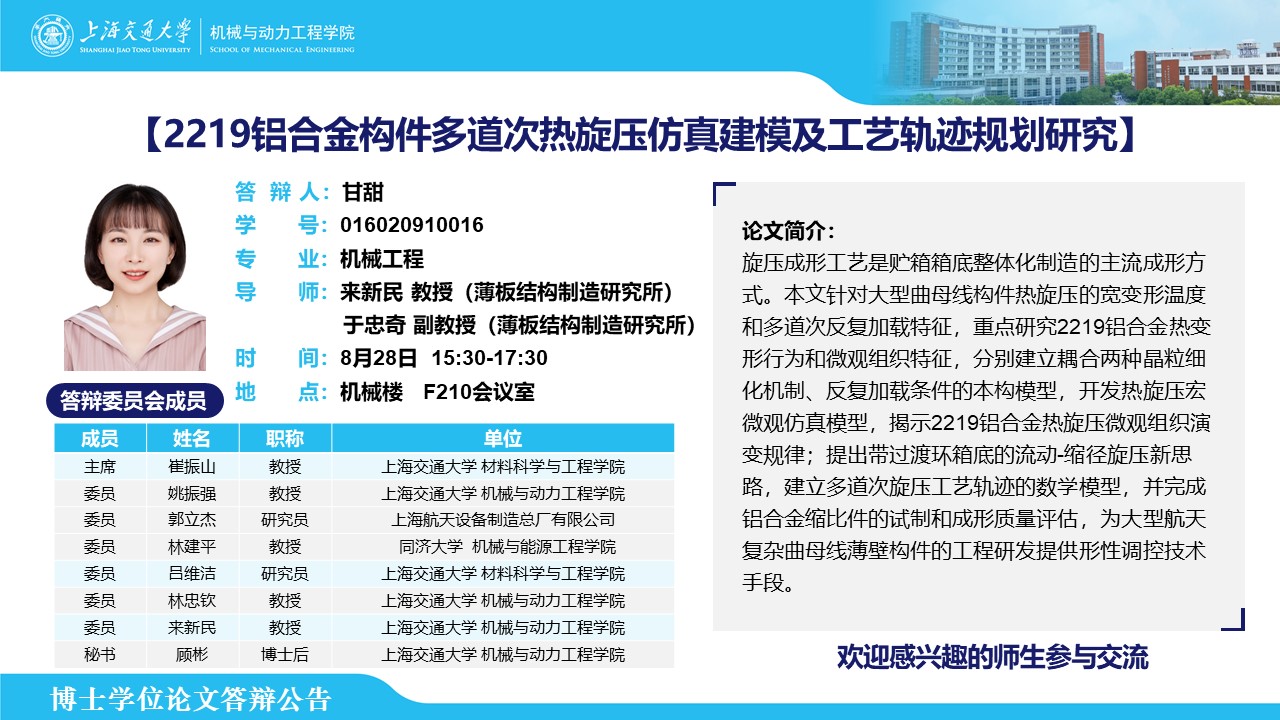 【答辩公告】博士学位论文答辩公告第五期(8月)