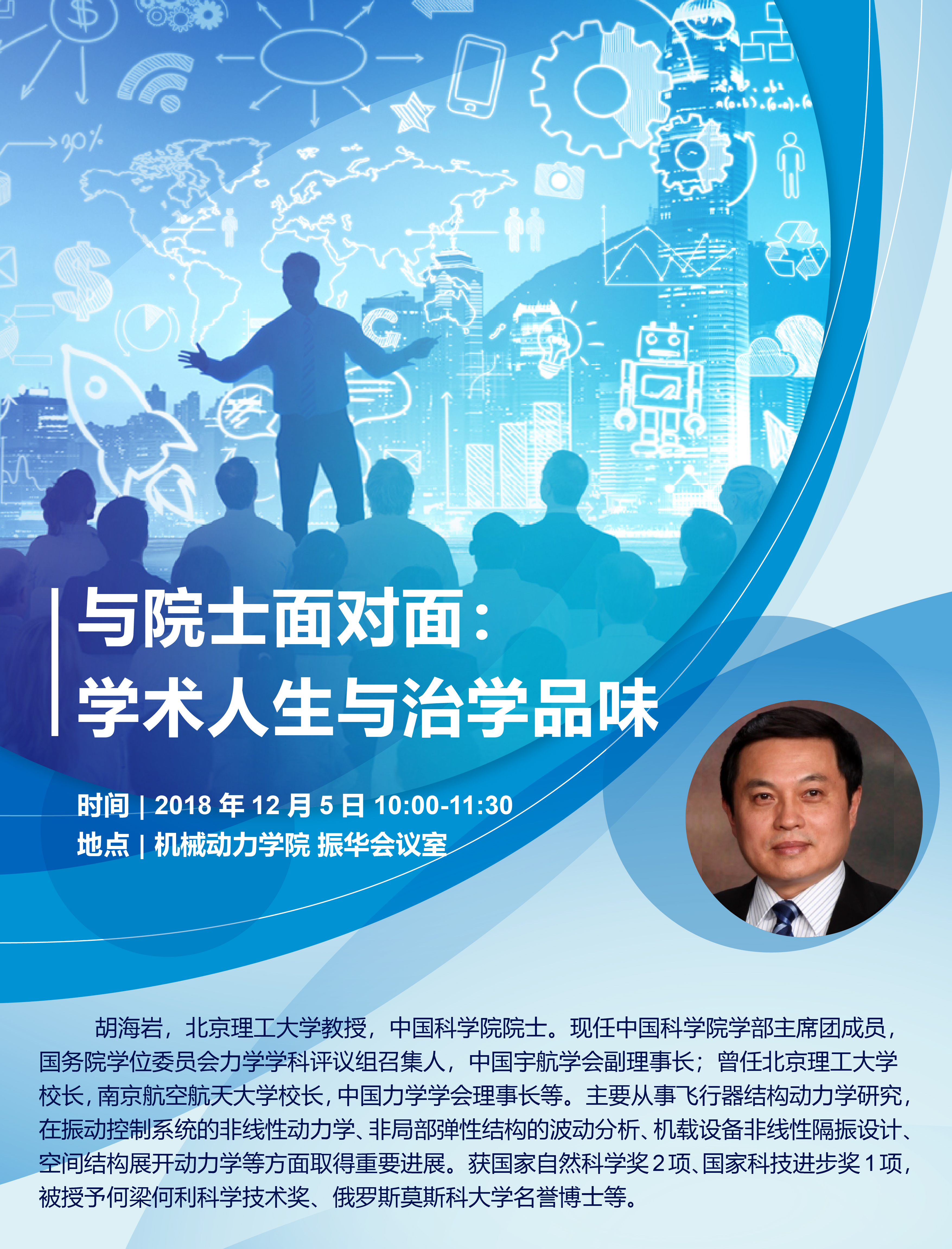 报告人:胡海岩 (北京理工大学教授,中国科学院院士)