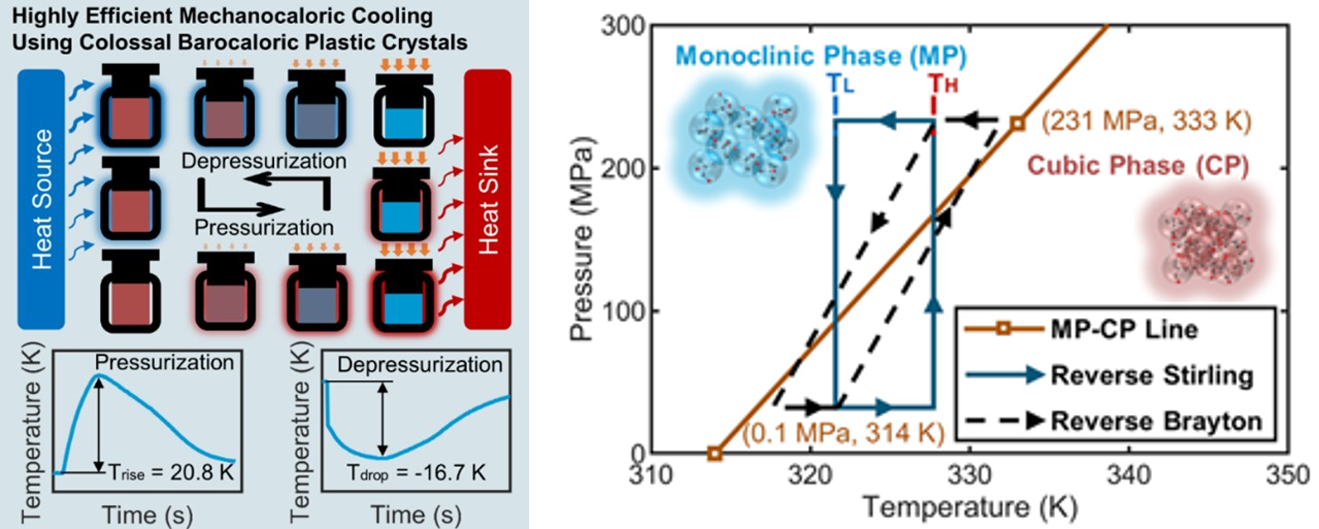 近日,工程热物理研究所林尚超课题组在Cell Press旗下Cell Reports Physical Science上发表题为“Highly efficient mechanocaloric cooling using colossal barocaloric plastic crystals”的论文,利用低成本的压卡相变塑料晶体材料新戊二醇,设计并搭建了国内首台近室温的压卡冷却循环测试原型样机,为实现大规模清洁绿色制冷技术提供了新的解决思路。工程热物理研究所博士研究生千坤和林尚超副教授为论文共同第一作者,林尚超副教授、赵长颖教授和中国科学院金属研究所李昺研究员为共同通讯作者。