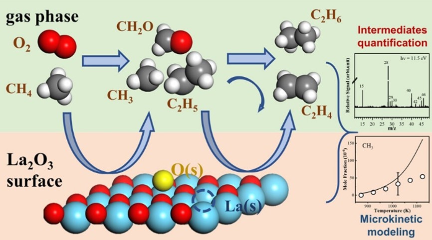 近日,beat365中文官方网站航空动力研究所苑文浩副教授在甲烷催化氧化偶联(OCM)微观反应动力学研究方面取得新进展,在催化领域期刊ACS Catalysis上发表了题为Elucidating the Mechanism for Oxidative Coupling of Methane Catalyzed by La2O3: Experimental and Microkinetic Modeling Studies的研究成果,博士研究生熊再立为论文第一作者,苑文浩副教授和齐飞教授为共同通讯作者。
