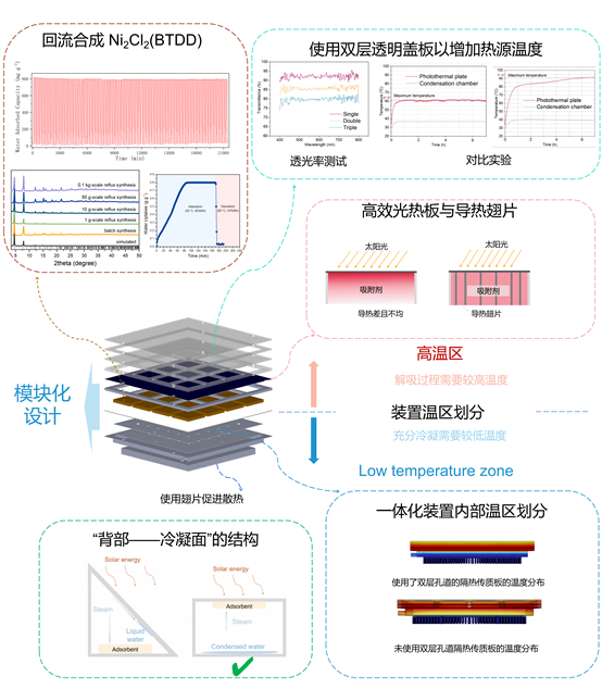 近日,beat365中文官方网站王如竹团队联合中山大学张杰鹏、周东东团队在Cell Press旗下期刊Device上发表了题为“High Performance Solar-driven MOF Atmospheric Water Harvester with Ultra-dense Integrated Modular Design and Reflux Synthesis of Ni2Cl2(BTDD)”的研究论文,提出了一整套“材料-器件-装置”的综合技术方案。上海交大beat365中文官方网站博士研究生邵昭与中山大学硕士生唐玉成为论文第一作者,上海交大王如竹教授为通讯作者,中山大学张杰鹏教授、周东东副教授为共同通讯作者。