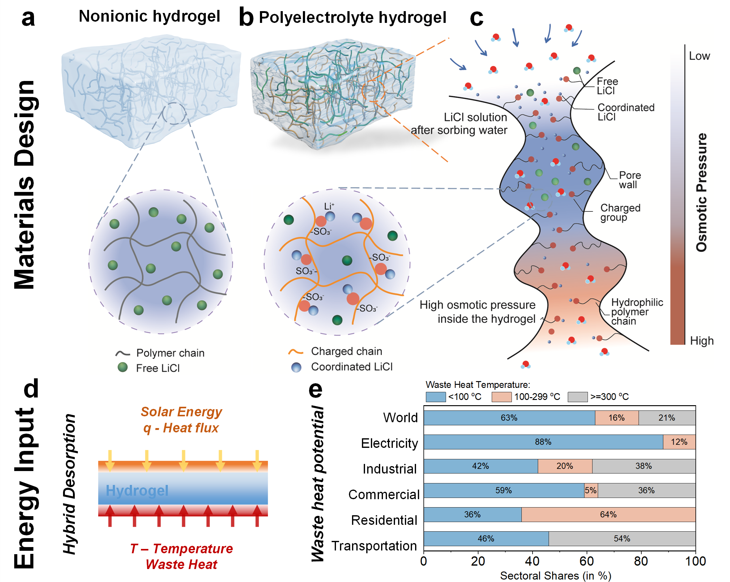 这种聚电解质水凝胶吸附剂的开发、耦合可持续能源驱动的混合解吸模式以及系统级传热传质和循环策略优化,为下一代空气取水系统铺平了道路,极大地拉近了与日产水量在数公斤尺度上的距离。