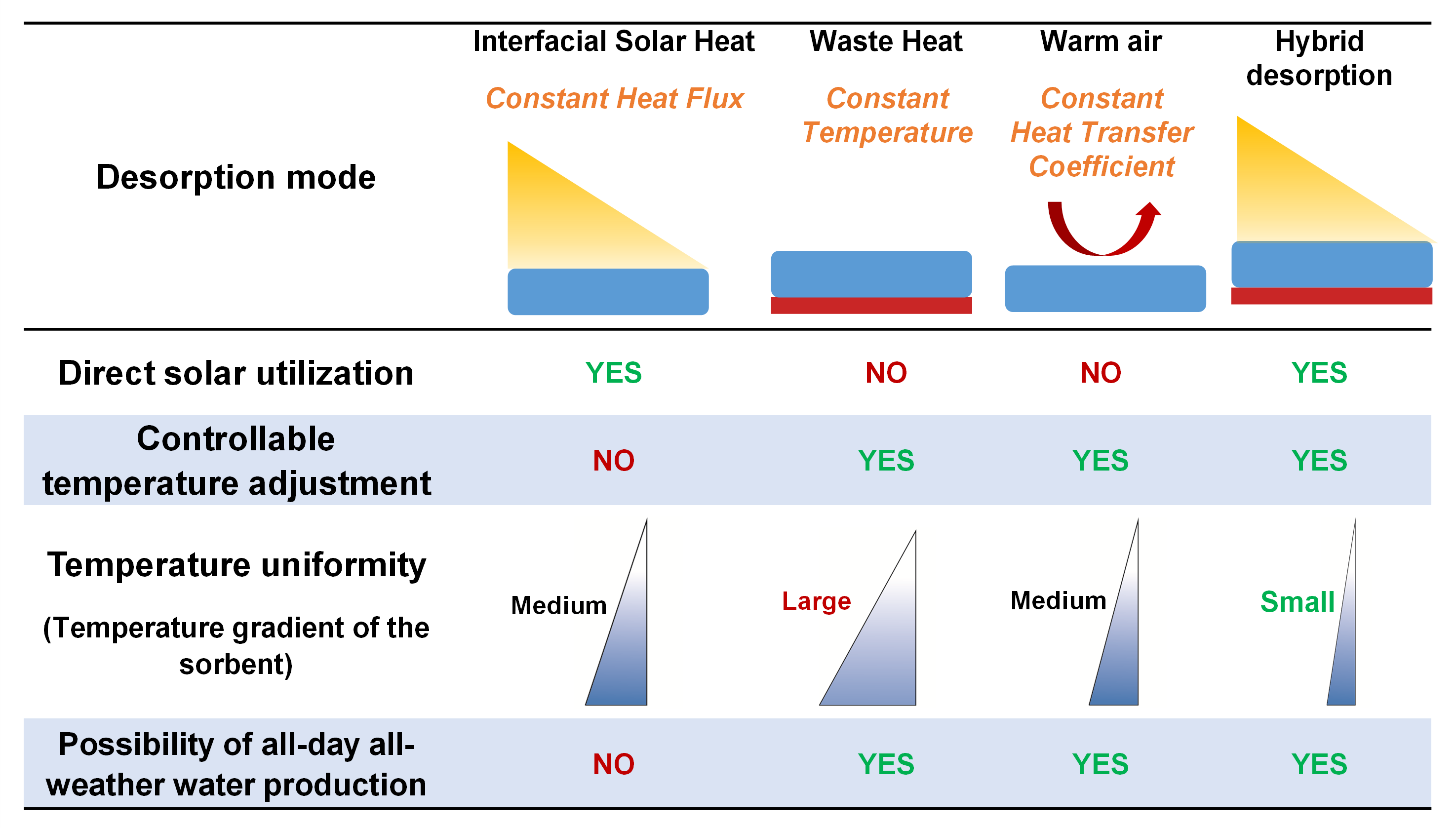 淡水短缺已成为威胁人类可持续发展的紧迫全球性挑战。基于吸附的大气水收集(AWH)被认为是缓解水资源短缺的一种有前途的方法,可以在大范围的相对湿度下实现淡水生产,特别是在低相对湿度的环境中。然而,目前吸附剂的动力学特性仍然受限,限制了空气取水系统取水量的进一步提高。此外,目前单一的太阳能驱动水释放解吸模式,难以实现真正的不受天气、气候影响的全天候、全地理位置取水。
