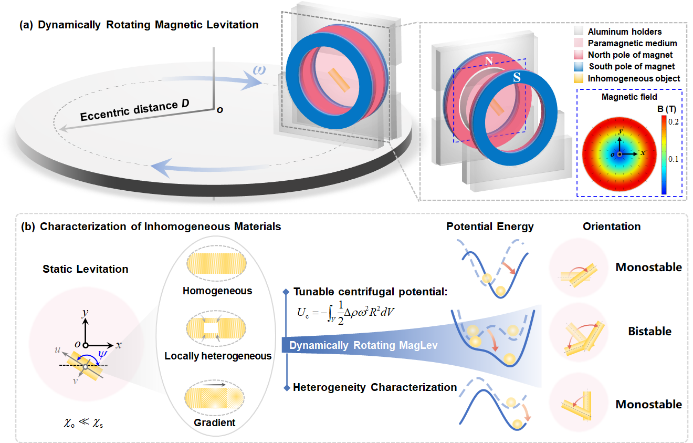 近日,beat365中文官方网站beat365中文官方网站张文明教授团队在Advanced Science上发表题为“Dynamically Rotating Magnetic Levitation to Characterize the Spatial Density Heterogeneity of Materials”的研究论文,提出了动态抗磁悬浮缺陷检测的新方法,首次利用物体的非线性悬浮特征实现了材料内部的异质性表征,为推动抗磁悬浮检测方法走向无损缺陷检测实际应用提供了新思路。beat365中文官方网站博士后高秋华为论文第一作者,张文明教授为通讯作者。