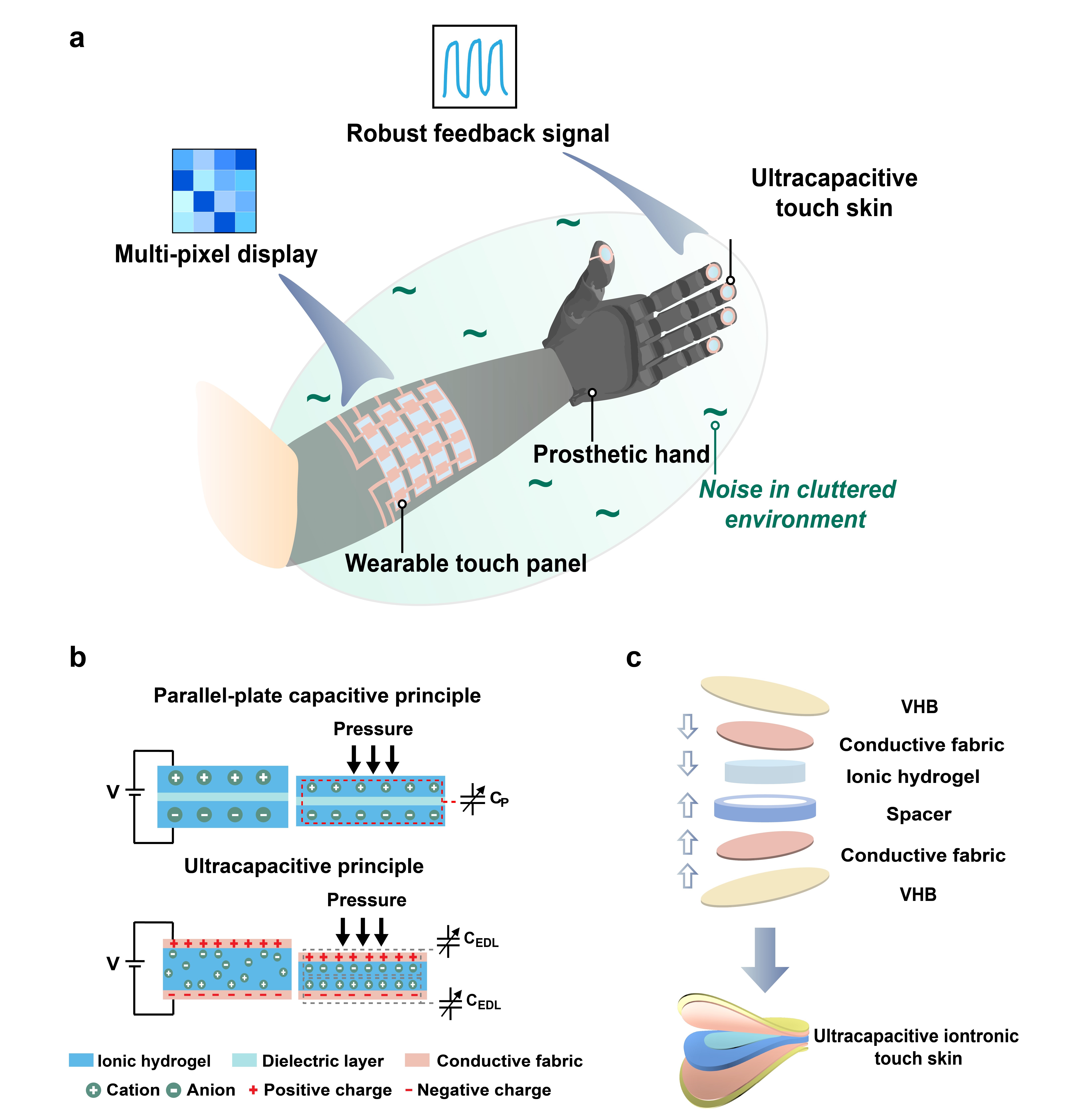设计触觉电子皮肤以模仿人类皮肤的功能和性能一直以来是一项重要的挑战。近年来,研究人员基于不同材料体系和传感机理研发了一系列压敏触觉传感器件。然而,这些传感器容易受到外界噪声的干扰,在与机器人系统集成时面临的非结构化的动态环境中难以展现理想的传感性能。