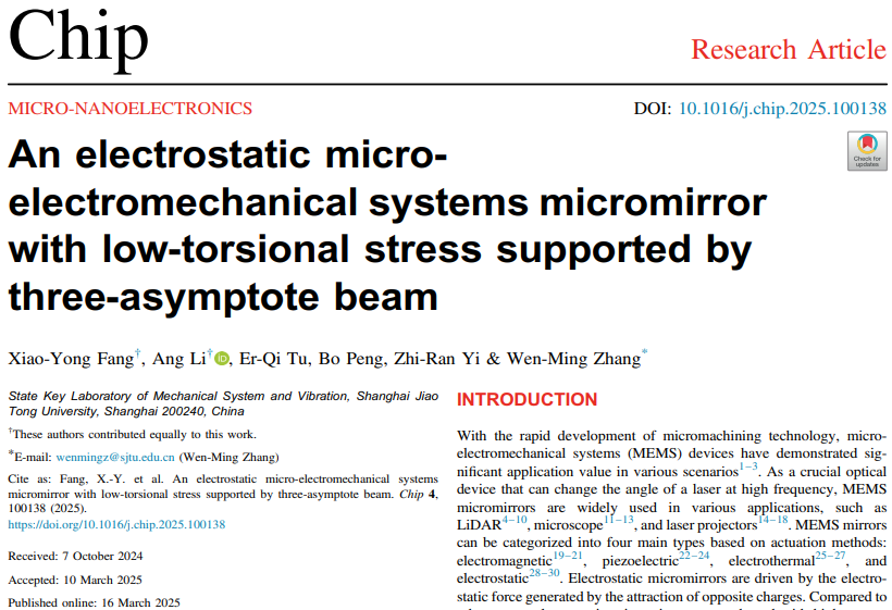 张文明教授团队提出一种低扭转应力的静电MEMS微镜设计