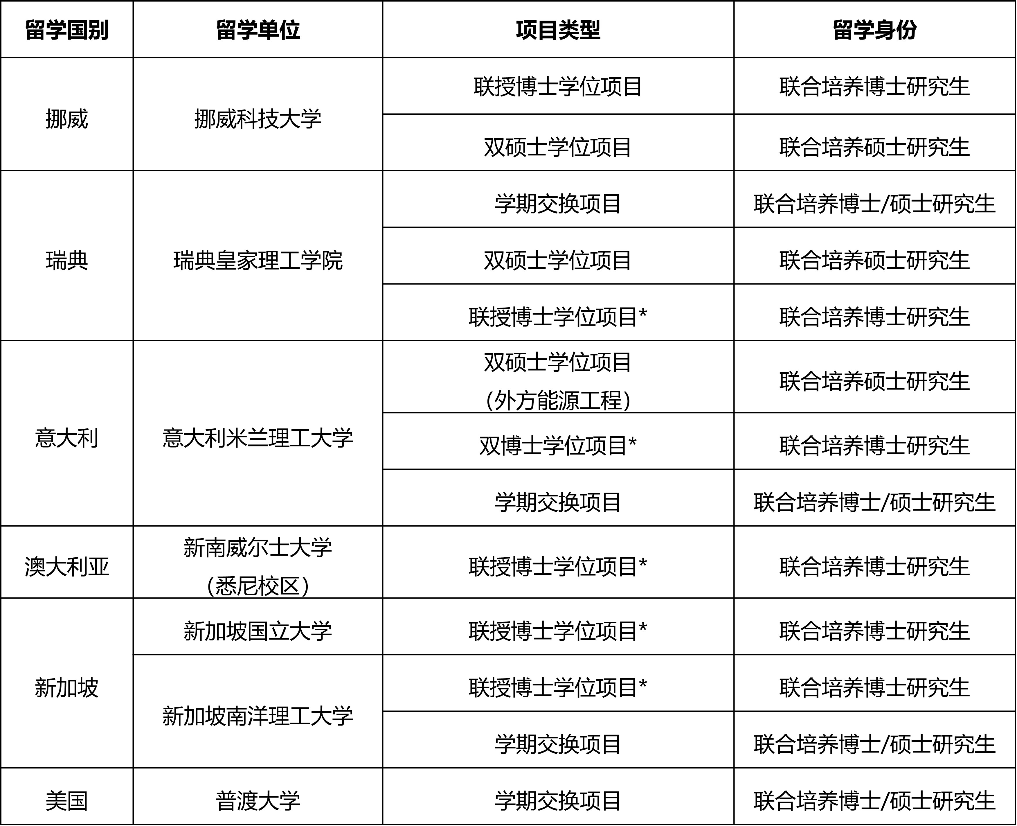 重要提醒:带*的留学单位属于beat365中文官方网站校级国际联授/双博士学位项目,须先获得相关校级国际联授/双博士学位项目的录取资格,才可申请“可持续能源与储能”创新型人才国际合作培养项目资助。关于校级国际联授/双博士学位项目申请,详见学校研究院相关链接https://www.gs.sjtu.edu.cn/post/detail/Z3MxMTgz