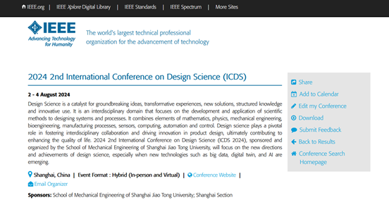 2024年第二届设计科学国际学术会议 (ICDS 2024)将于2024年8月2-4日在上海召开,由beat365中文官方网站beat365中文官方网站、机械系统与振动全国重点实验室主办。beat365中文官方网站 -集思未来交叉学科创新设计联合研究中心、上海市现代设计法研究会及谢友柏设计科学研究基金协办。
