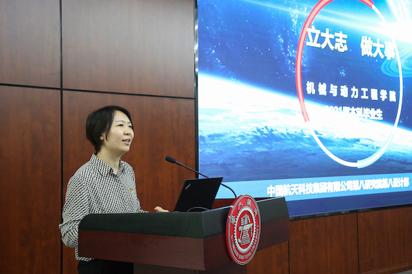 鲍然结合自身在交大学习和在中国航天科技集团有限公司工作的经历和感悟,以“立大志,做大事”为主题,与毕业生党员分享了自己作为一名航天人的初心与成长。她对中国航天事业以及所在单位进行了概要介绍,展示了中国航天自1956年起步以来探索浩瀚宇宙,发展航天事业,建设航天强国所取得的辉煌成就,列举了航天八院在国家航天事业发展中做出的贡献,与同学们分享中国航天人在自力更生、自主创新的发展道路中所积淀的深厚博大的航天精神。她勉励毕业生党员要在未来的学习工作中注重个人能力的锻炼提升,保持持续学习的态度;在工作中勇于克服困难,直面挑战;要有良好的品德和团队协同能力;她希望毕业生党员做到“坚毅、有情怀、不忘初心”。要有责任有担当,有强烈的爱国心、时刻听从祖国召唤;在获得成功的时候,体会实现目标的成就感的同时,依然不忘初心,砥砺前行。最后,她为毕业生党员送上衷心的祝福,党员代表也回赠纪念礼物。