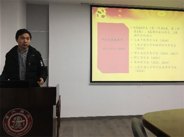 随后,进行了毕业生经验交流分享,优秀毕业生代表结合自身经历,为同学们娓娓道来,气氛十分活跃。硕士生优秀毕业生代表张凯伦以“勇于尝试,不怕失败”为主题,回顾了硕士生涯中学习、科研、学生工作等的点点滴滴,他勉励同学们要敢于尝试,不畏惧失败,也要脚踏实地、勤奋积累,不要虚度时光。博士生优秀毕业生代表张朝阳发表了“选择与感恩”为主题的毕业感言。他建议刚刚入学的博士生能够真诚地与自己导师交流,找准自己的定位,为自己的选择负责,不忘初心,不负青春。他还提出要懂得感恩,感恩含辛茹苦的父母、学风严谨的交大、无私奉献的师长和身边共同成长的同学们,牢记“饮水思源、爱国荣校”的校训,在更广阔的平台上展现自己的风采。