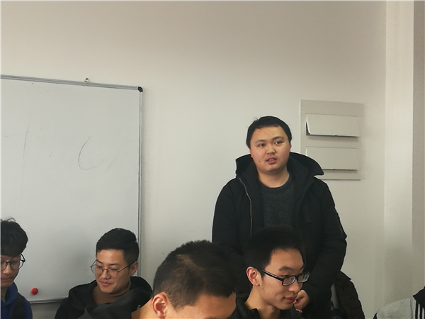 唐佑远首先带领大学学习两会精神,强调要将两会精神落实到日常生活学习中去。作为一名研究生,脚踏实地,坚持创新,将科研方向接轨国家发展,牢记使命,不忘初心,不畏艰难,勇做新时代的建设者。