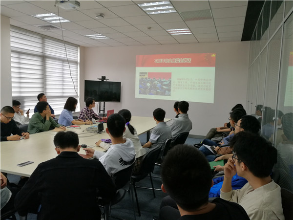 支部副书记周梦倩带领大家学习习近平总书记在北京大学师生座谈会上的讲话精神。她从五四起源、党的十九大战略安排和习近平总书记“寄语”三个方面组织大家学习,重点学习了总书记对广大青年的几点希望:一是要爱国,忠于祖国,忠于人民;二是要励志,立鸿鹄志,做奋斗者;三是要求真,求真学问,练真本领;四是要力行,知行合一,做实干家。屈原同志结合自己的思想汇报,分享了自己对习近平总书记北大讲话精神的学习感悟。