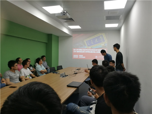 之后,韩佳宸书记首先带领与会同志学习了习近平总书记在北京大学师生座谈会上的讲话精神。他首先带领大家观看了新闻联播对于习近平总书记在北京大学师生座谈会上的讲话的播报视频。看完视频后,大家仍然意犹未尽,想要更深入的了解习近平总书记的讲话精神。韩佳宸又带领大家进一步学习了习近平总书记给广大青年提几点希望。习近平总书记在北大的重要讲话具有里程碑意义,是党的十九大以来总书记面向高等教育乃至整个教育战线作出的首次重要讲话,对新时代的高等教育和高校师生提出了系统的、鲜明的要求,指明了中国高等教育的发展之路。最后为了贯彻落实沪交委47号文件“中共beat365中文官方网站委员会beat365中文官方网站关于印发《beat365中文官方网站教育思想大讨论方案》的通知”,进一步落实“立德树人、学在交大”的人才培养举措,加快建成中国特色、世界一流大学,与会研究生同志分别就学习学业、校园文化、校园管理等展开讨论。余天佐老师就相关问题做出答复,并表示会就大家讨论和反映的问题向学校学院部门反映,更好的促进学校、学院和同学们的共同发展和进步。