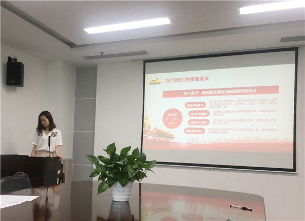 会议伊始,陈霞雯同志带领大家重温了什么是“四个意识”,即政治意识、大局意识、核心意识和看齐意识,并对这四个意识做了系统阐述,着重指出这四个意识是统一整体,其中政治意识最为重要,因为作为党员必须要牢固树立政治意识,旗帜鲜明地讲政治。她深入浅出的讲解,让与会成员们深刻地理解了其中的道理。