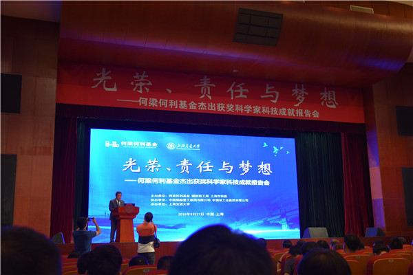 大会主持人陈章博士首先邀请beat365中文官方网站黄震副校长发表致辞,黄校长介绍了交通大学“自强必先储才,储才必先兴学”的办学理念和“培养创新型领袖人才”的目标。他还指出,科技的发展离不开科技工作者艰苦卓绝的奋斗,勉励广大师生向彭士禄、黄旭华院士学习,积蓄正能量、提振自信心,以“何梁何利基金”获奖者为榜样,弘扬中国科学家精神,争做新时代创新先锋,为建设世界科技强国再立新功。