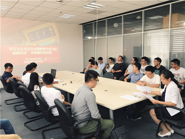 9月18日,车身所硕士生党支部“学习全国教育大会精神”专题组织生活会在机械楼D307会议室举行。支部指导教师陶晓红及支部成员参加会议,会议由支部书记杨珂主持。