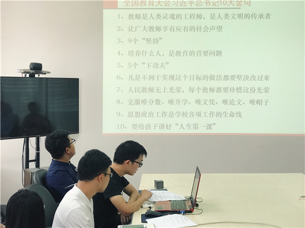 首先,杨珂带领与会同志学习习近平总书记在全国教育大会上的重要讲话,向大家解读了大会上习近平总书记的10大金句。习近平总书记从党和国家事业发展全局的战略高度,系统总结了我国教育事业发展的成就与经验,深刻分析了教育工作面临的新形势新任务,对加快推进教育现代化、建设教育强国、办好人民满意的教育作出全面部署。杨珂还分享了自己参加学校2018年“教书育人奖”表彰大会的感受,向扎根教育第一线的老师们致以崇高敬意。